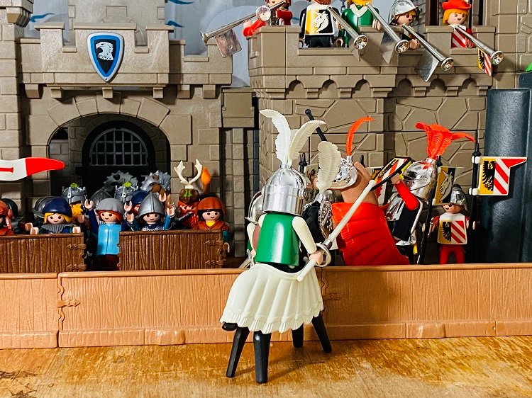 Oh, wie war das dramatisch! Keiner der beiden Ritter schien die Oberhand zu erlangen. Beim Publikum herrschte eine unglaubliche Aufregung! Es johlte und applaudierte ermutigend.