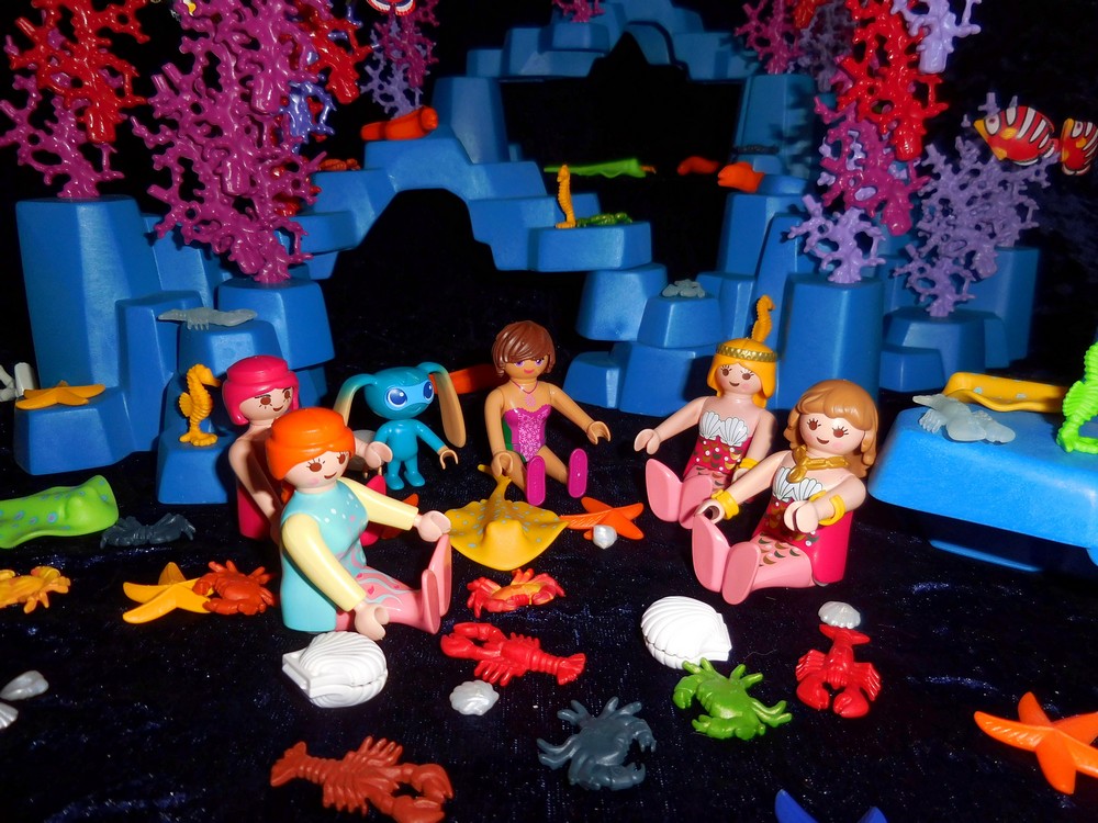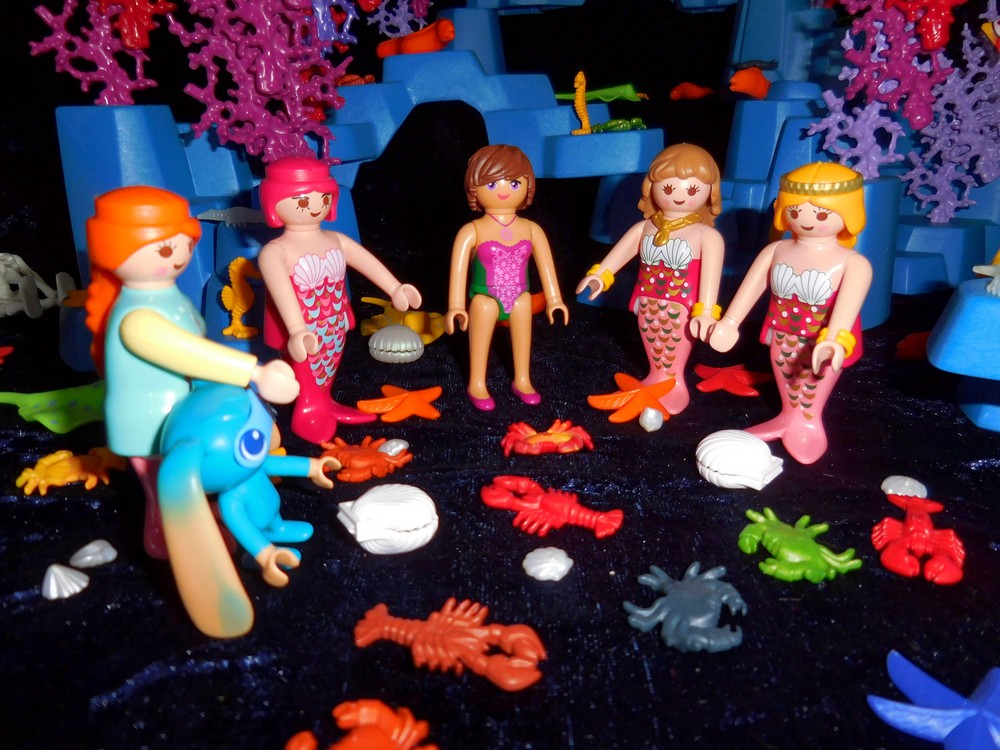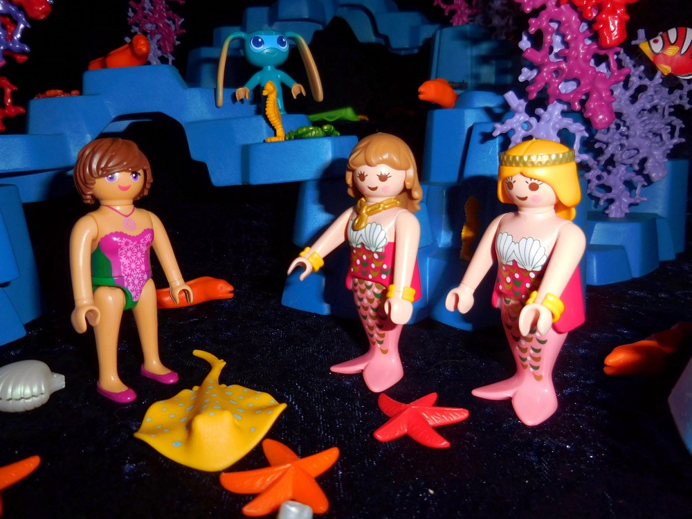 mitten in einem wunderschönen Korallenriff. Drei weitere Meermaids