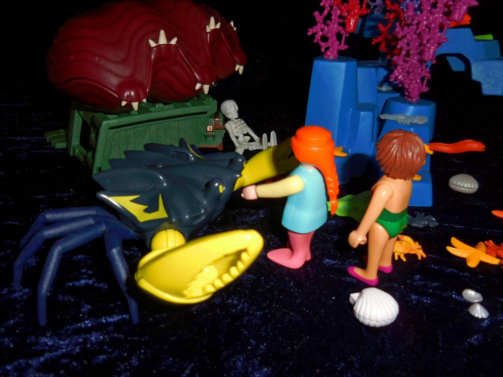 Die Riesenkrabbe, zu der sie mich führt, bewacht ein altes Schiffswrack,