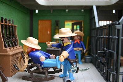 Im Rausgehen sagt er noch:In 10 Minuten am County Jail, Sheriff!