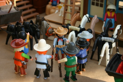 Mack Winter hat seine "Sicherheitskräfte" zusammengerufen. Die Männer haben schon Ihre Pferde gesattelt und sich im Lagerhaus mit Waffen und reichlich Munition versorgt.