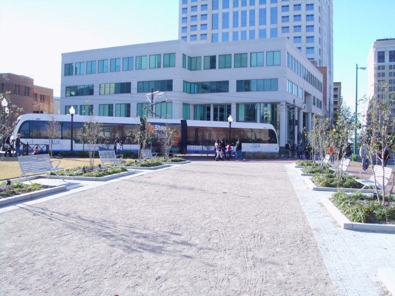 „Der neuste Hit hier in Norfolk ist die „Tide“ eine Straßenbahn. Da gab es jahrelang Streit drum und die Leute hatten Angst, dass ihre Kinder von dem Ding überfahren würden, sie in Autos rast und, und, und … kann man als Europäer nicht zwingend nachvollziehen, ist aber allmählich im Kommen.“