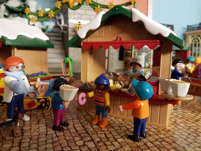 Vorgestern hat der Weihnachtsmarkt aufgemacht. An den Spielzeugbuden trifft man immer die halbe Schule.
