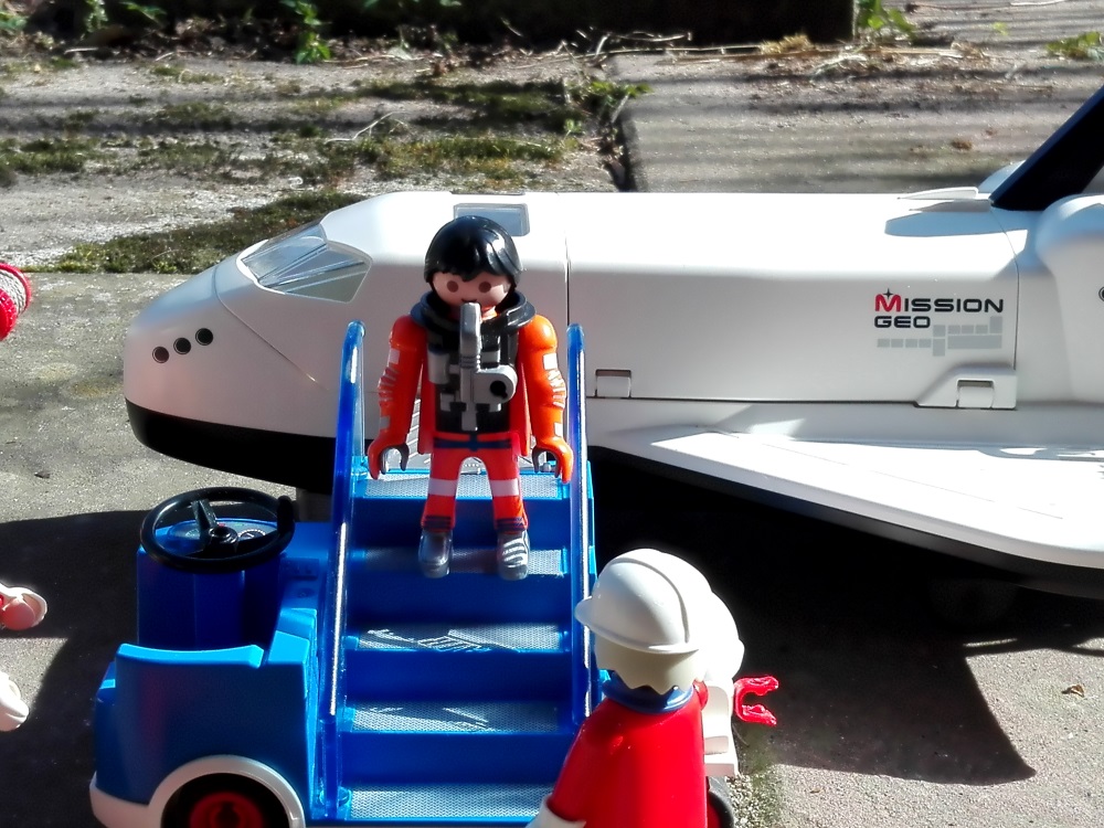 Schließlich wird eine Treppe herangefahren und David verlässt das Shuttle.