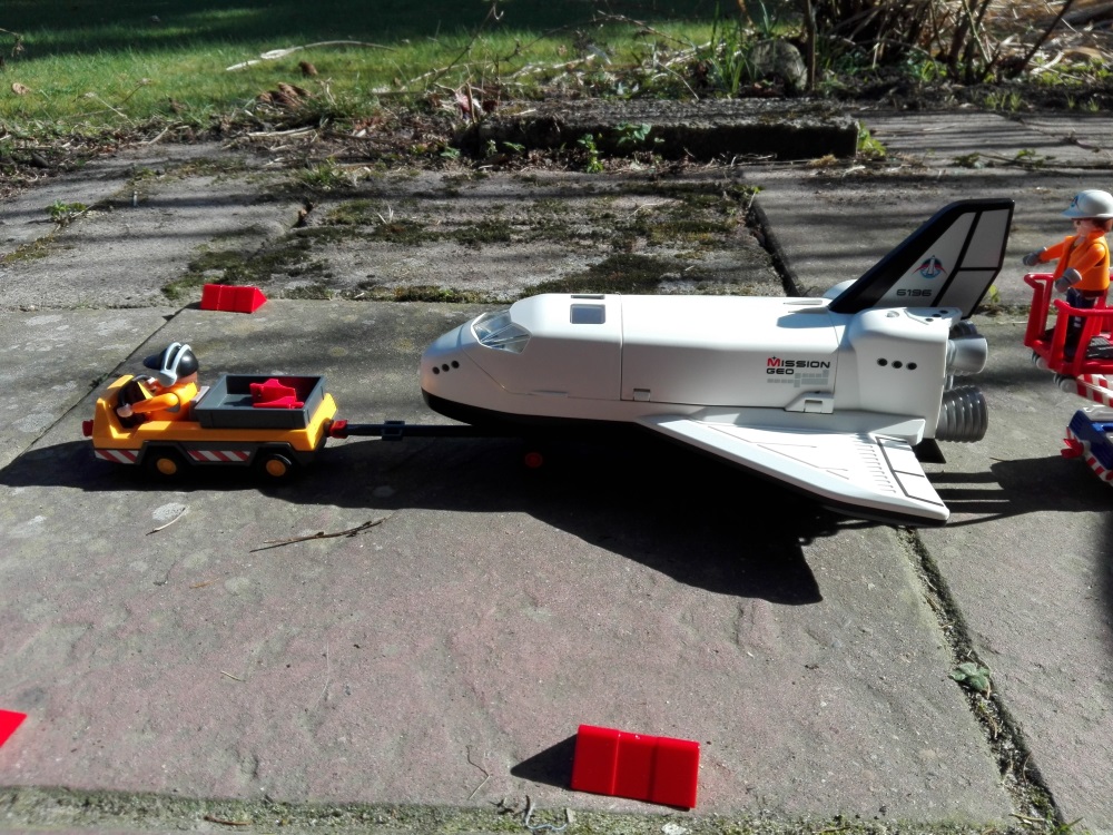 Einige Stunden später wird das Shuttle dann zurück zum Hangar geschleppt.