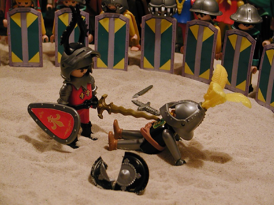 Mit einem einzigen Schlag zerfetzte Hartmut den Schild seines Gegners …