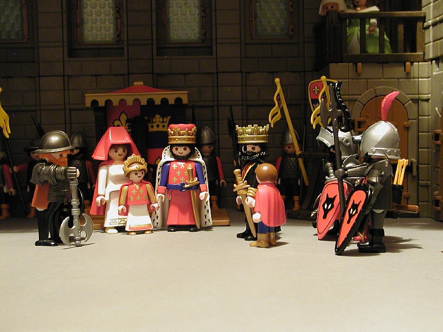 Der Herrscher rief so laut er konnte zum Richtplatz hinunter: "Ritter Hartmut haltet ein! Ich hätte euch gestern mehr Gehör schenken sollen, als ihr bei mir wart!"