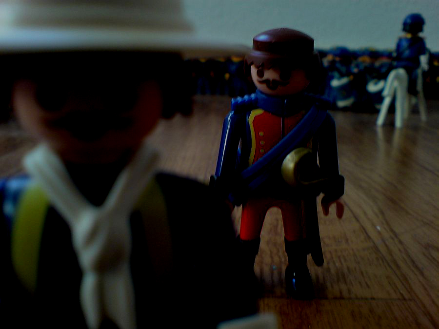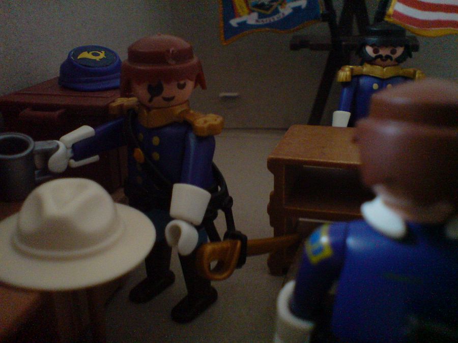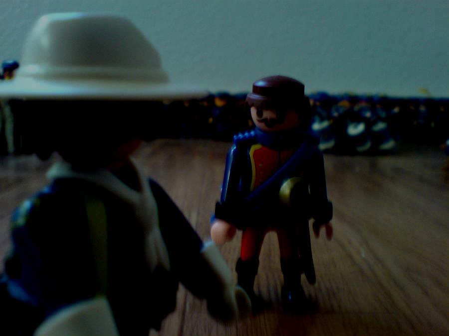 "Nun Hauptmann. zur Zeit warten wir noch auf die Artillerie. Die können wir ja schlecht im Feindesland ohne Schutz zurücklassen." "Lt.Collonel, die einizgen Rebellen im Umkreis von 100 Meilen, sind in diesem Tal."