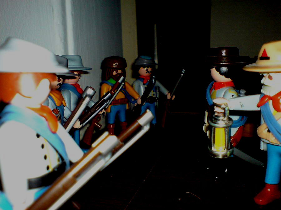 "Colt kennt sich mit der Dunkelheit aus und wird vorausgehen. Der Sarge deckt euch den Rücken. Wenn ihr Yankees endeckt, tretet sofort den Rückzug an. Keine Extratouren!"