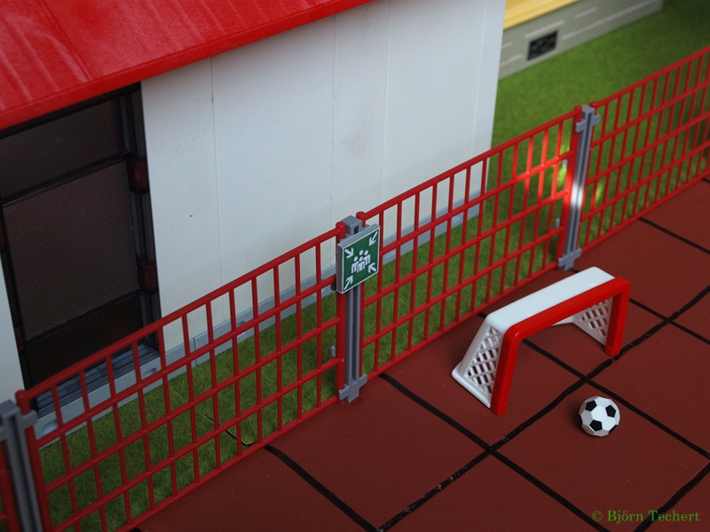 Gegenüber ist die Anfahrtszone für die Feuerwehr zur Grundschule.