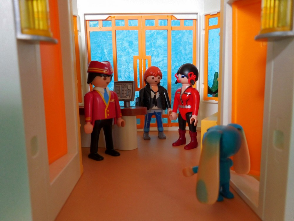 Er geht zum Aufzug und wünscht uns noch einen angenehmen Aufenthalt.