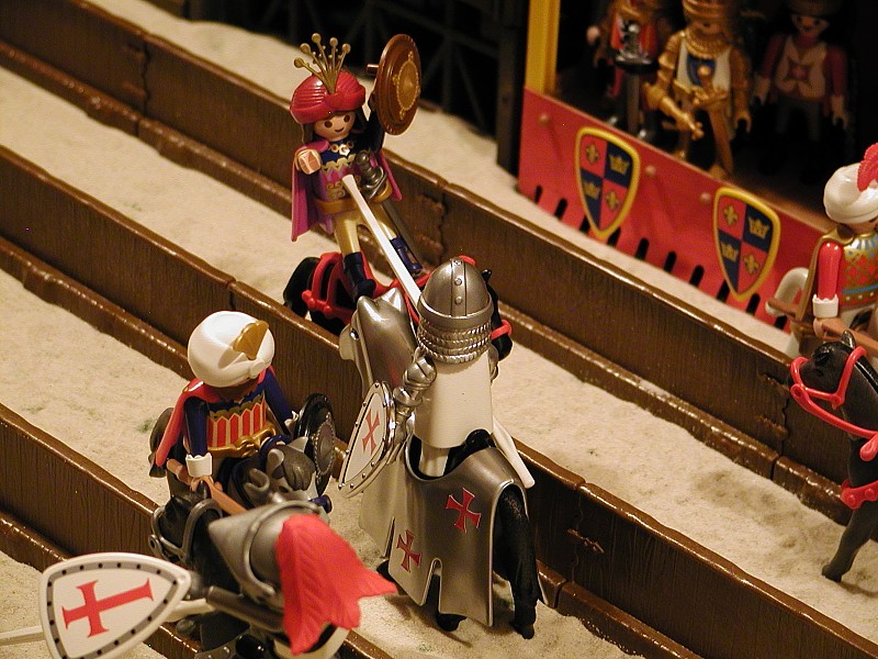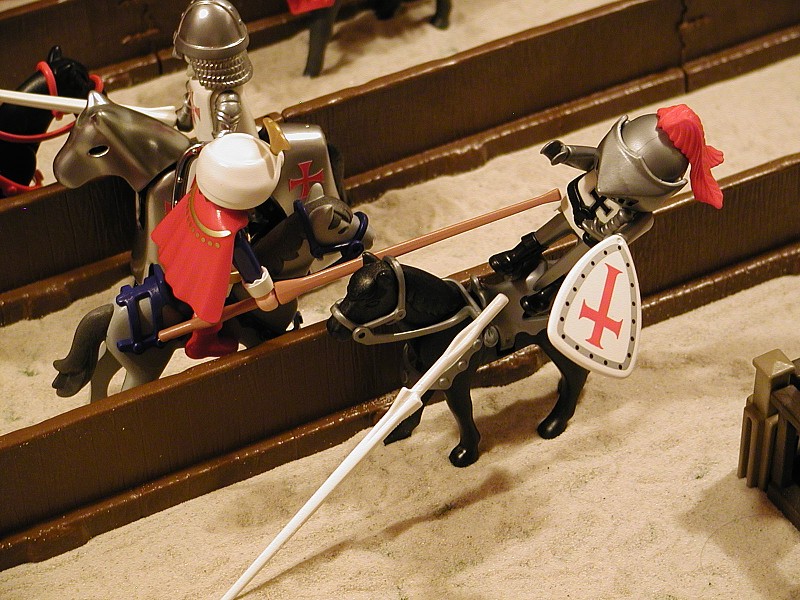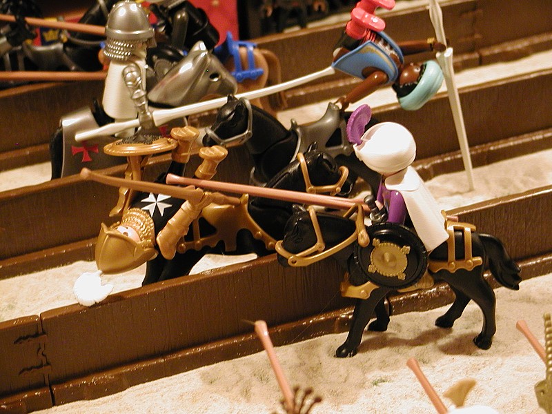Oha! Ich glaube die Kreuzfahrer sollten alle Sarazenen im heiligen Land weiträumig umgehen. Dabei sind es doch die Franken, die als die zu Fürchtenden gelten, wenn sie mit Lanzen bewaffnet sind. Hier ging das mal in die Binsen... bzw. in den Turniersand.