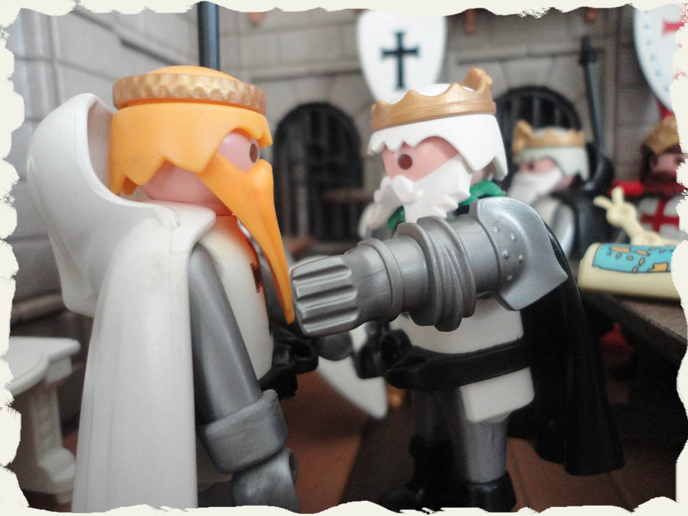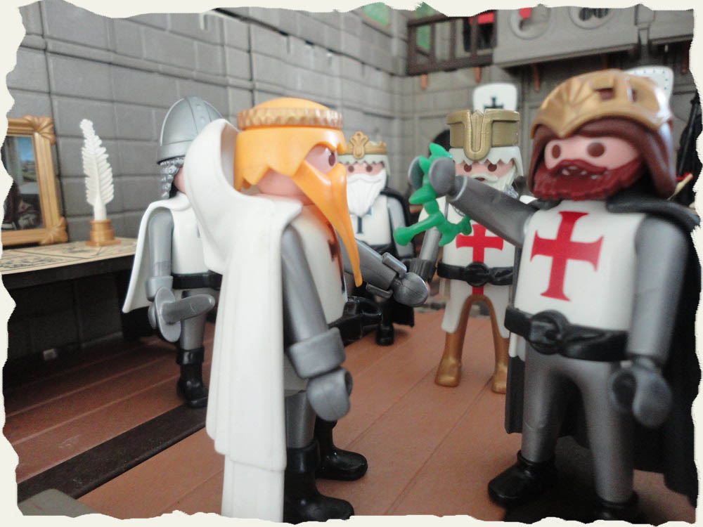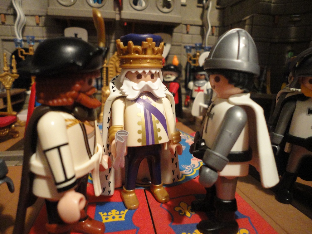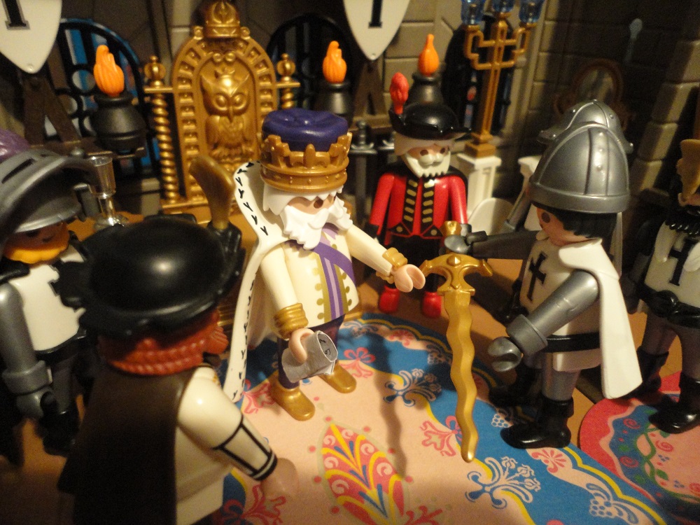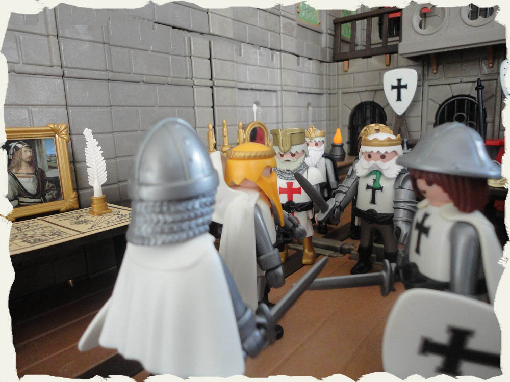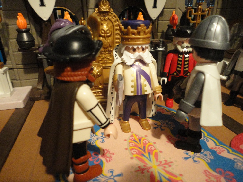 Späher: „Es ist furchtbar mein König. Wir haben soeben entdeckt mit welcher gewaltigen Streitmacht unsere Feinde bereits sehr dicht an unsere Stadtmauern herangekommen sind. Was sollen wir tun?“