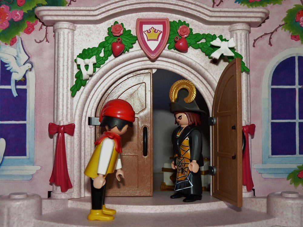 Er geht in ein verzaubertes Schloss, missachtet arrogant alle Aufgaben,