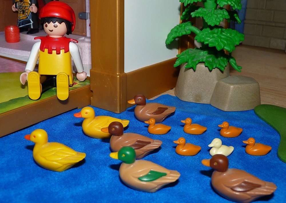 Die Enten lockte er auch ans Ufer, aber um sie mit Brosamen zu füttern; den Bienen brachte er frische Blumen mit, die er am Wege gepflückt hatte.