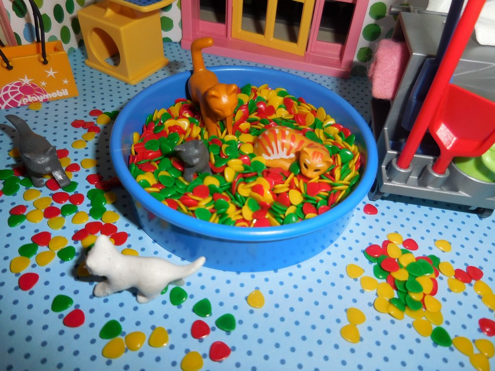 die Katzen es richtig toll finden, mit den Bällchen zu spielen. Die