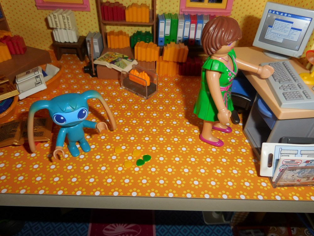 Kiki schnappt sich das Papier, merkt aber dann sehr schnell