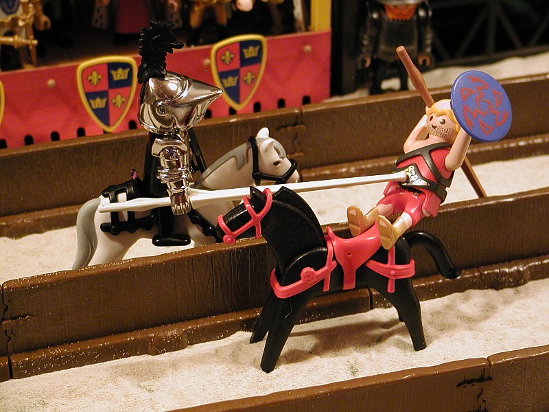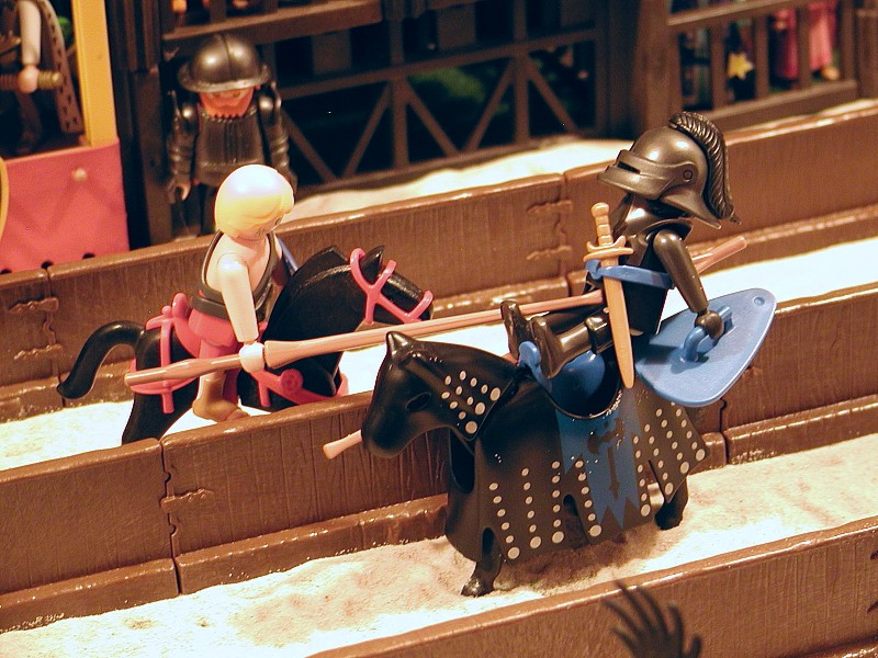 "Ich werde heute ohne Rüstung kämpfen! Da fühle ich mich wohler!" - "Gute Idee, aber sehr gefährlich, wenn dich eine Lanze an einer ungeschützten Stelle trifft!"