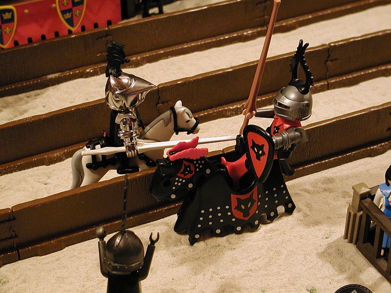 Der Zwergenritter hat keine Chance gegen den brutalen Wolfsclanritter.