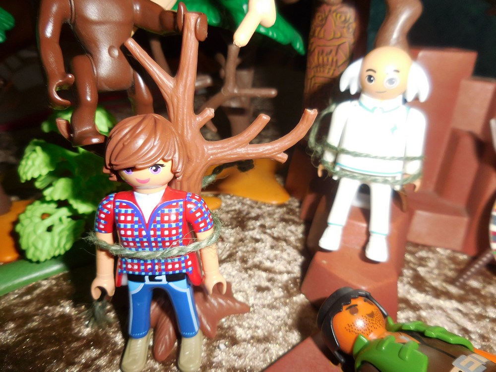 ungefesselt auf einem Stein. Neben ihm hockt sich jetzt einer