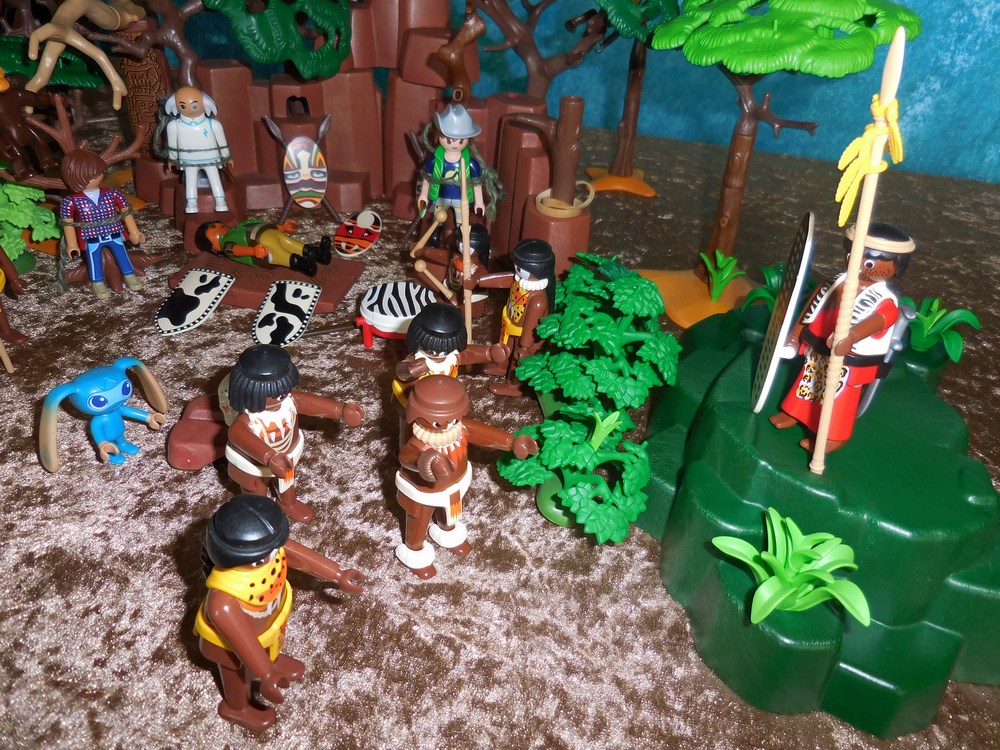 Die Eingeborenen begrüßen den Mann, der wohl ihr Führer ist.