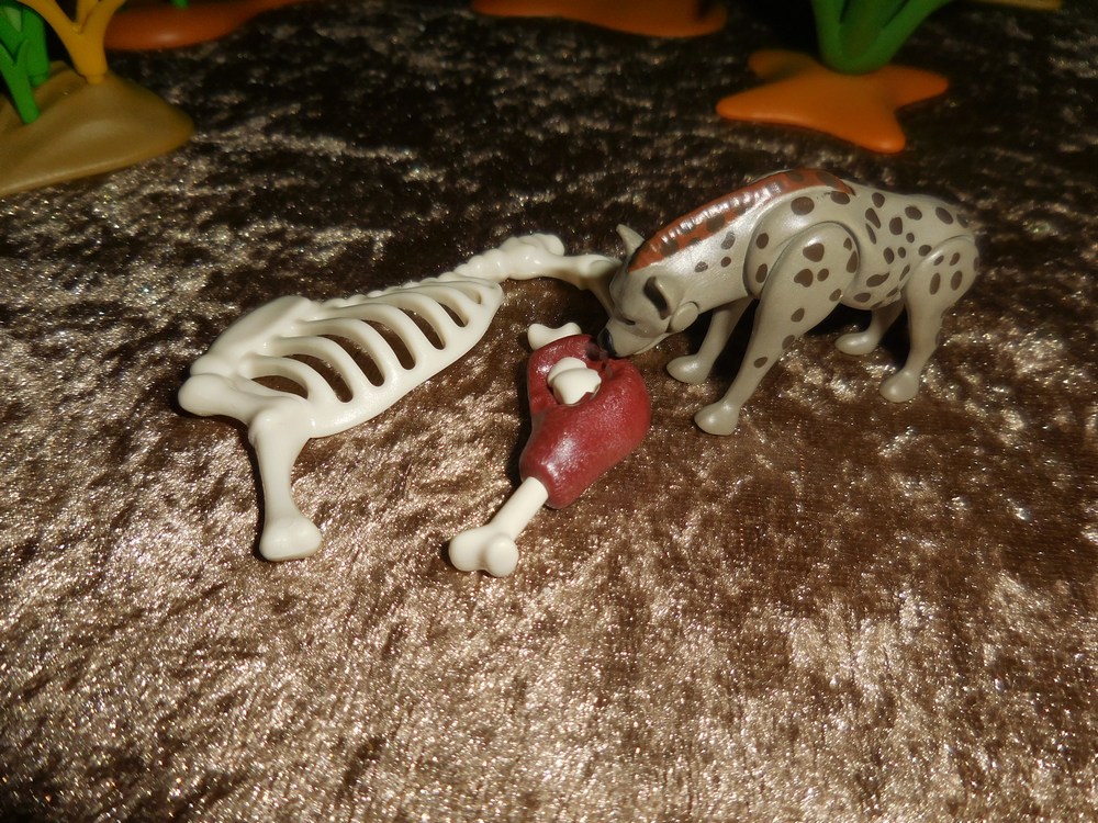 Nein, es ist nur eine einsame Hyäne, die sich an den Resten des
