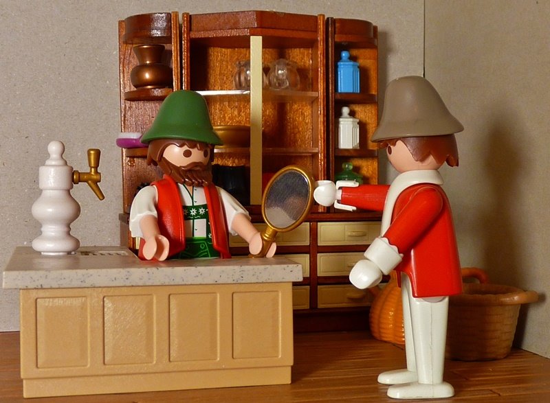 Ja, der Schrank ist echtes Holz, die Schuibladen und Regalfächer aus Plastik. Den Schrank habe ich vor ewigen Zeiten mal in Goslar erstanden als Puppenstubenzubehör. Passt einfach genial zu Playmobil und gehört eigentlich in den Tante Emma Laden in meinem 1900 Dorf. http://www.klickywelt.de/viewtopic.php? ... t&start=30