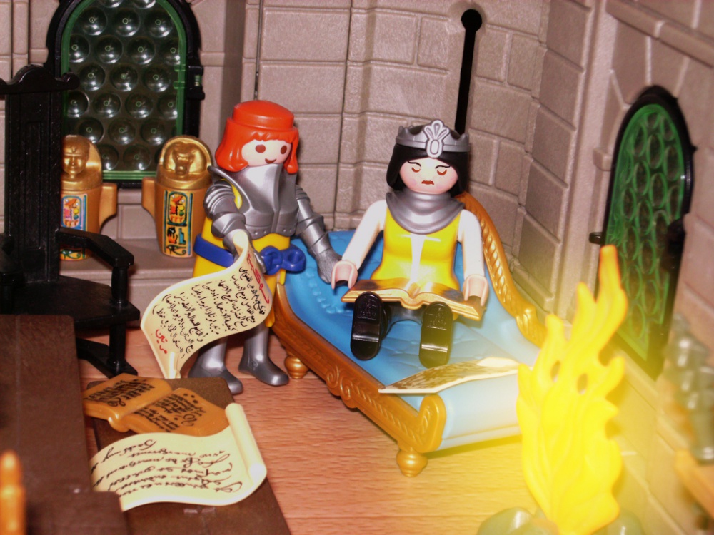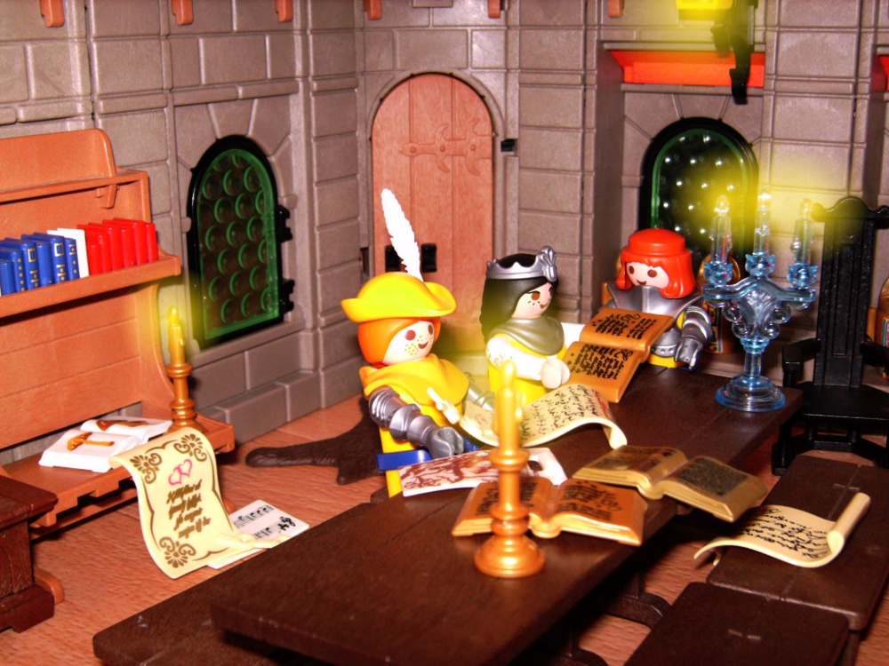 Dann zeigte Maga Raila den Besuchern, in welchem Regal sie die Bücher und Schriften zu ihrer Suche finden könnten. Sogleich begannen sie, in alten Büchern und Pergamenten zu stöbern.