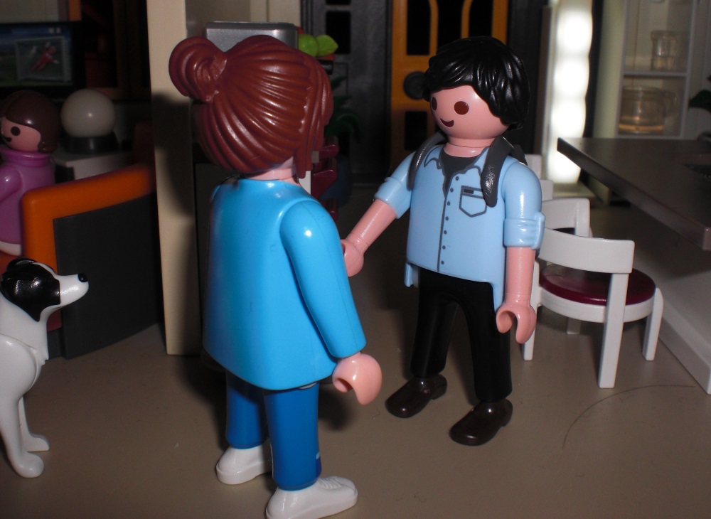 Die beiden sitzen gerade auf dem Sofa, als es plötzlich klingelt.