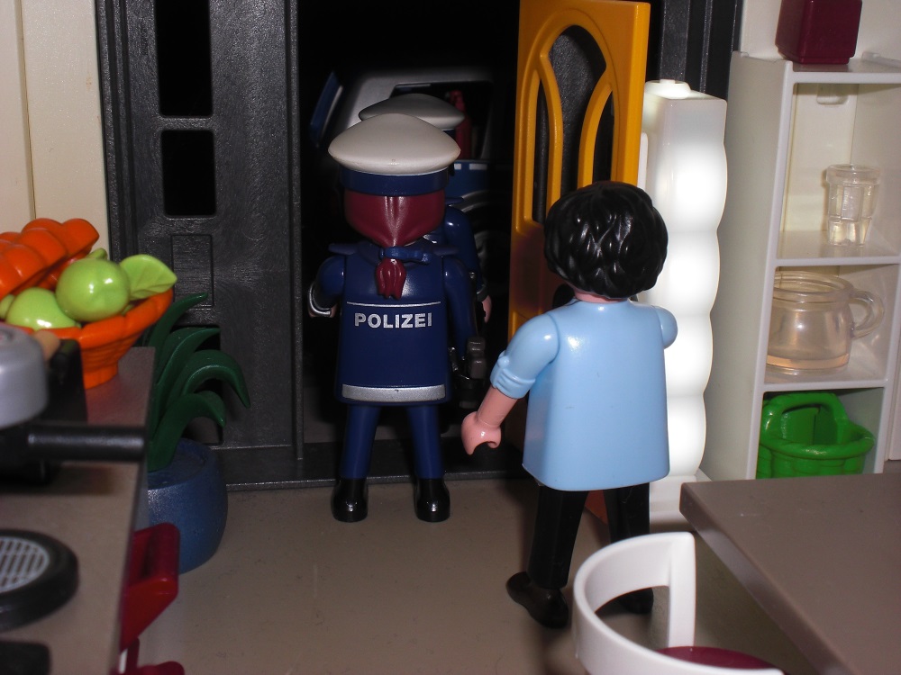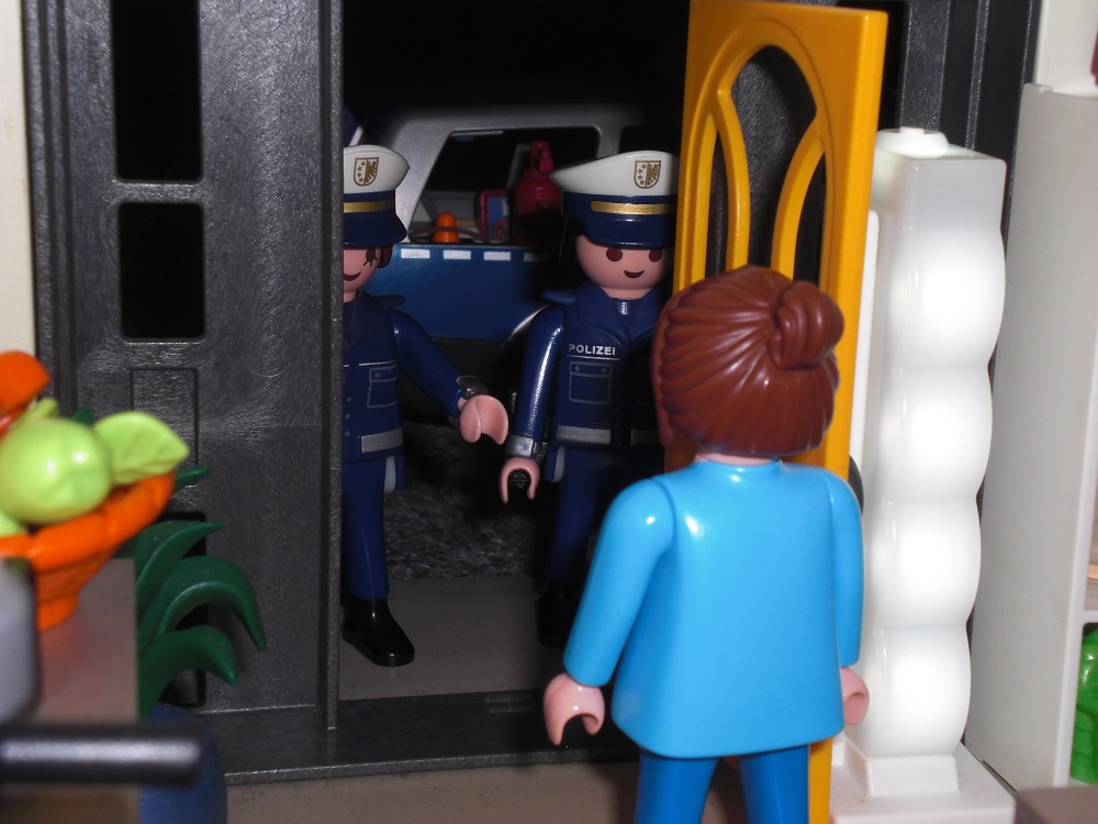 Sie geht zur Tür und öffnet. Es sind die beiden Polizisten.