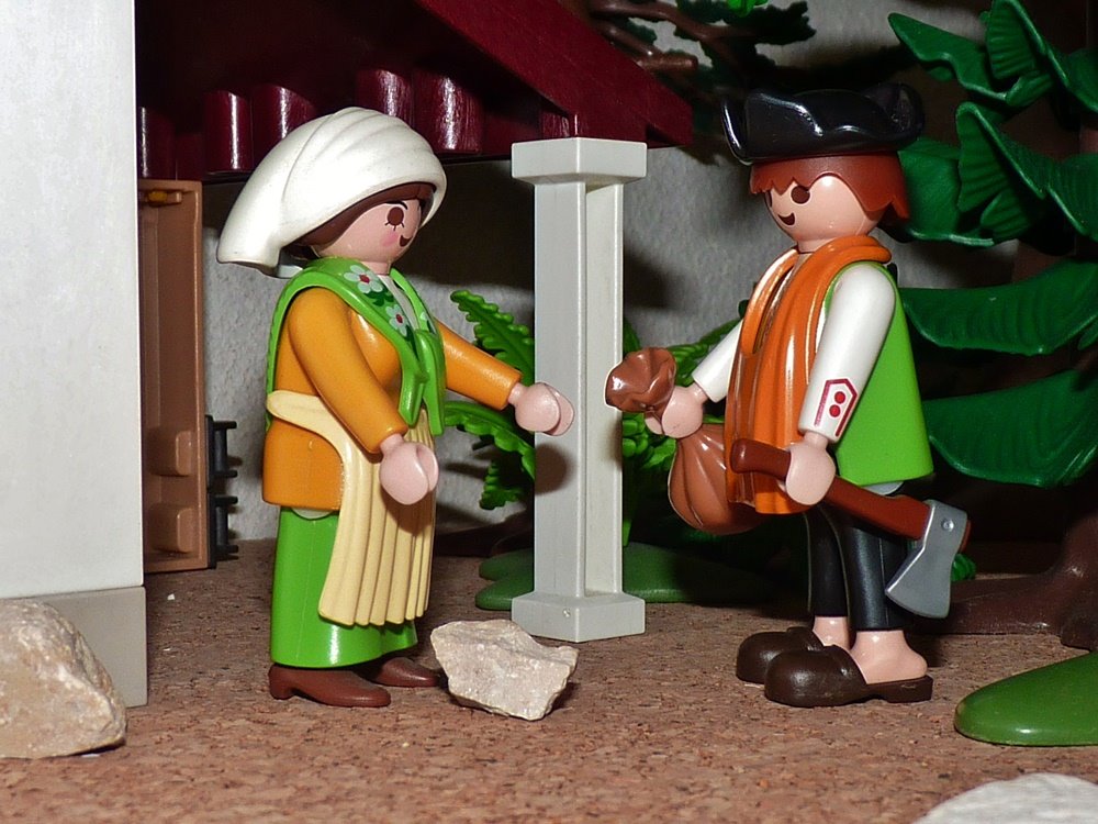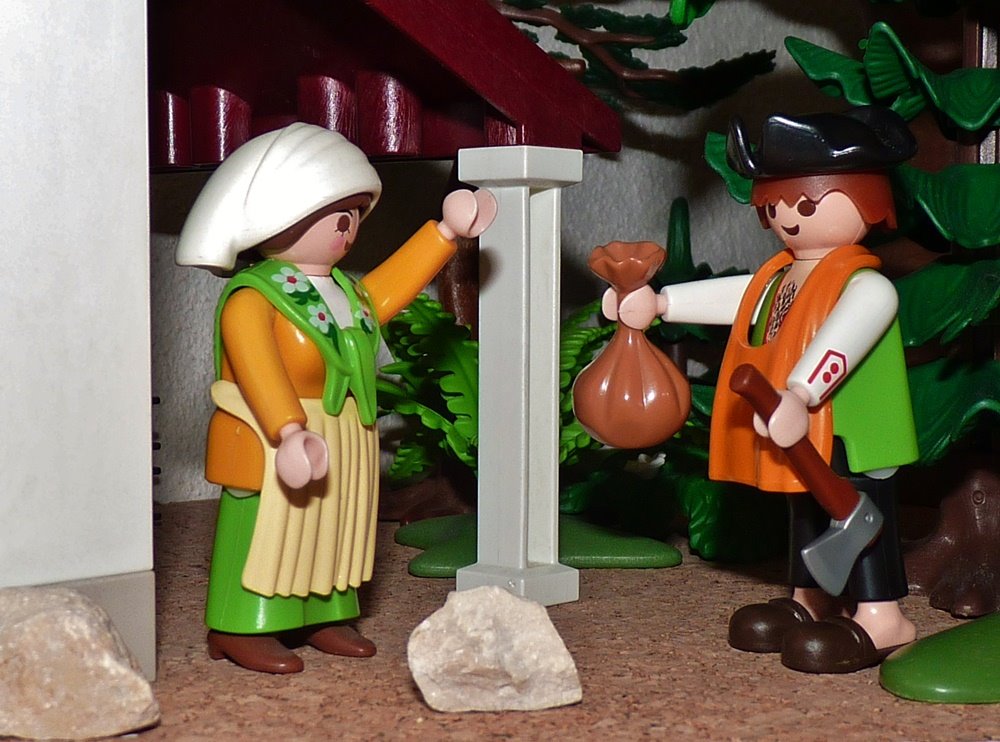 Der Holzhauer kam am späten Abend nach Haus und machte seiner Frau Vorwürfe, dass sie ihn den ganzen Tag habe hungern lassen. „Ich habe keine Schuld“, antwortete sie, „das Mädchen ist mit dem Mittagessen hinausgegangen, es muss sich verirrt haben; morgen wird es schon wiederkommen.“