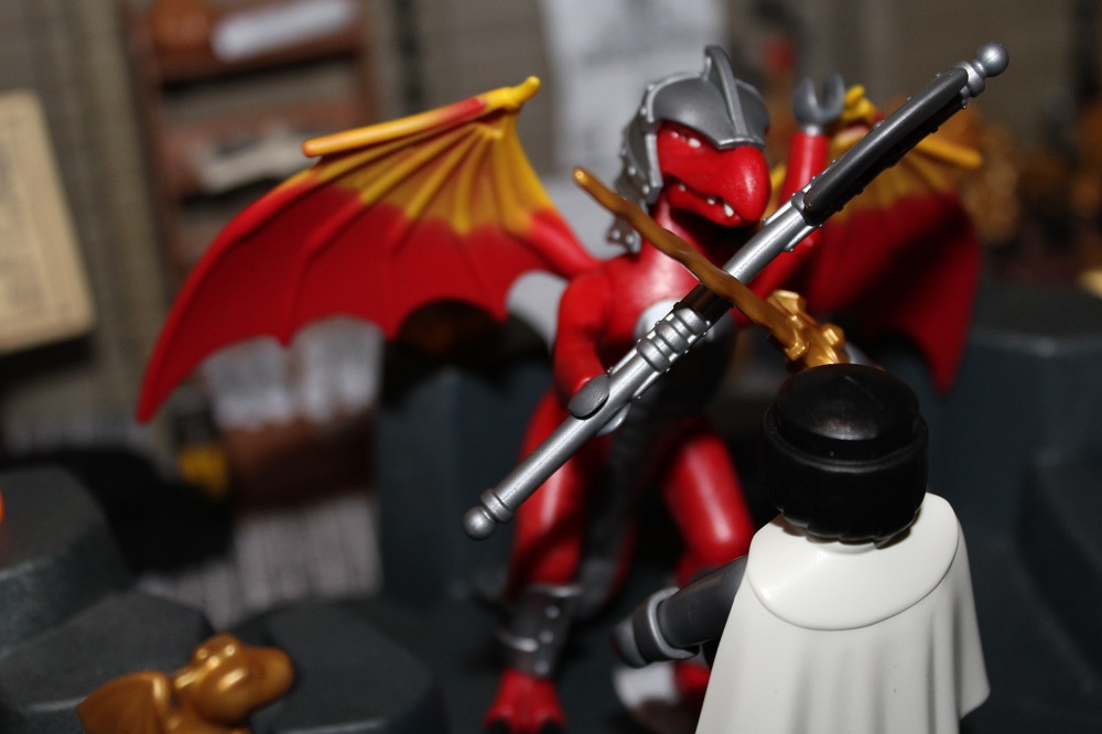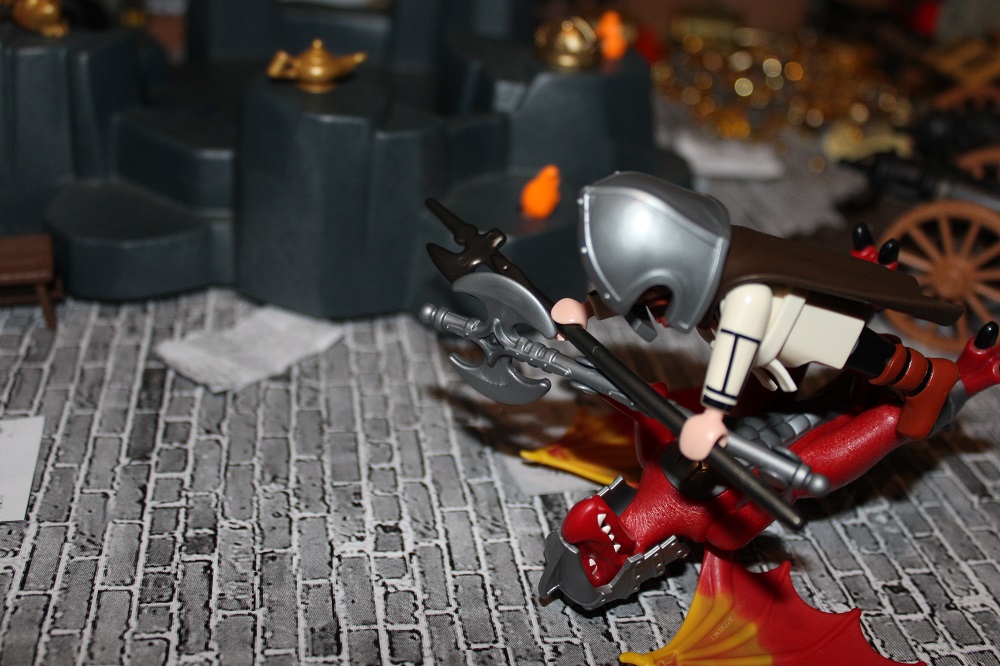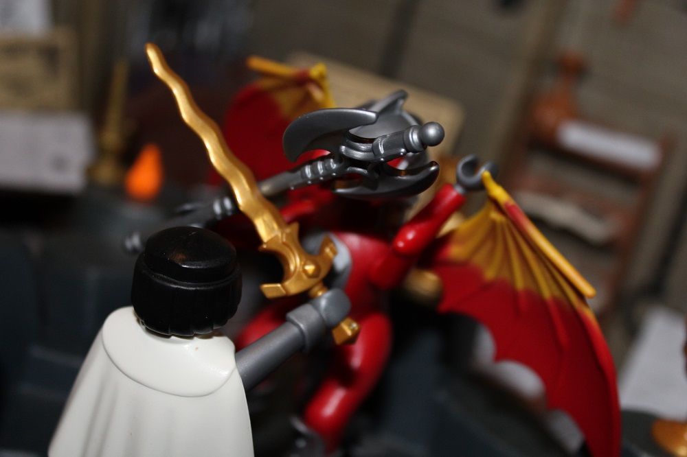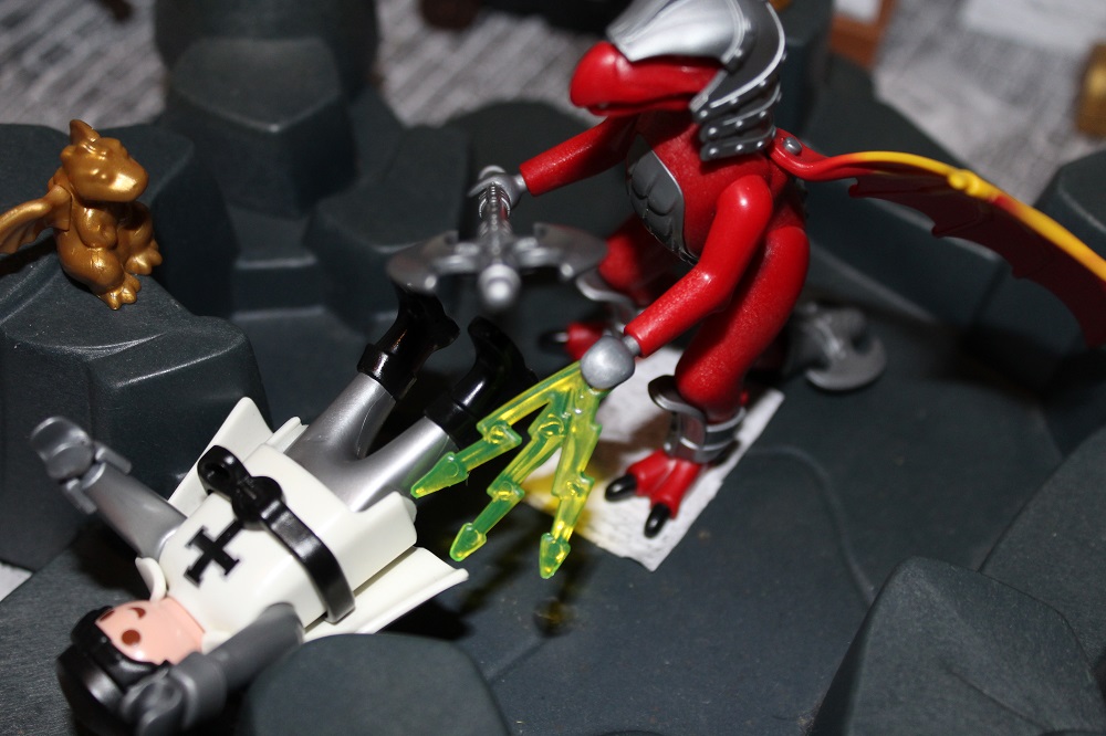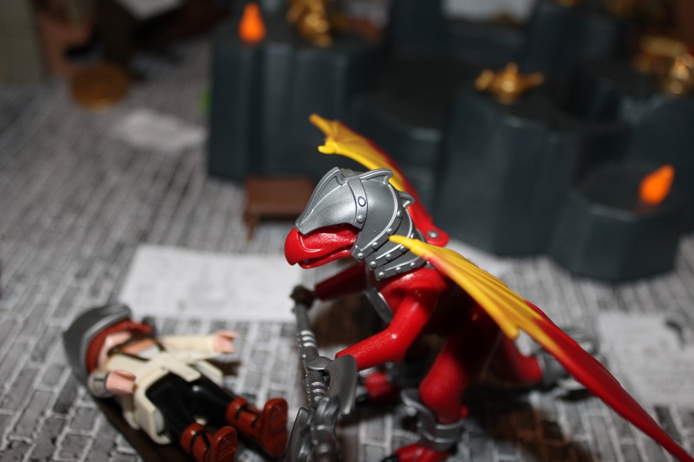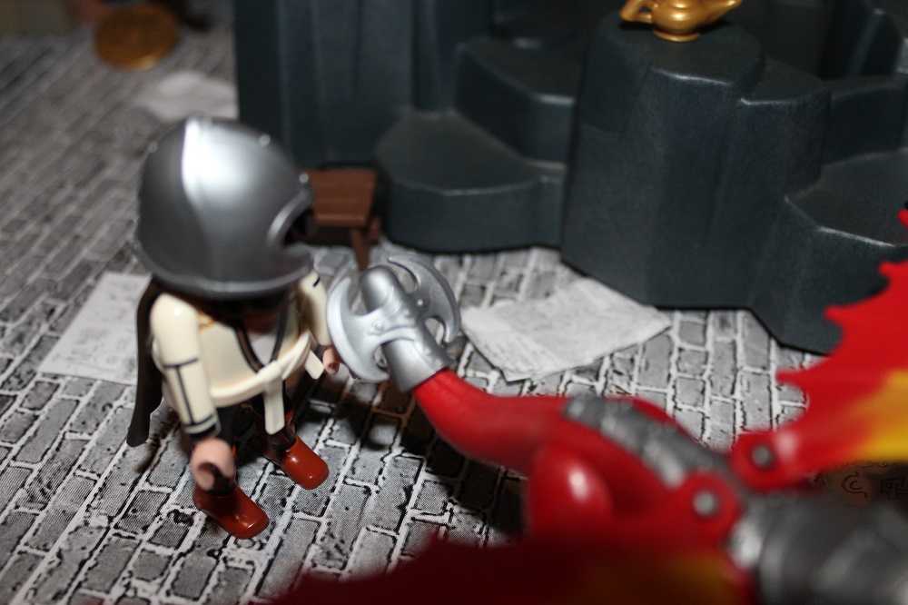 Das Drachenwesen stand verächtend vor ihm und schwang seine Axt in die Höhe um zum finalen tödlichen Schlag auszuholen.