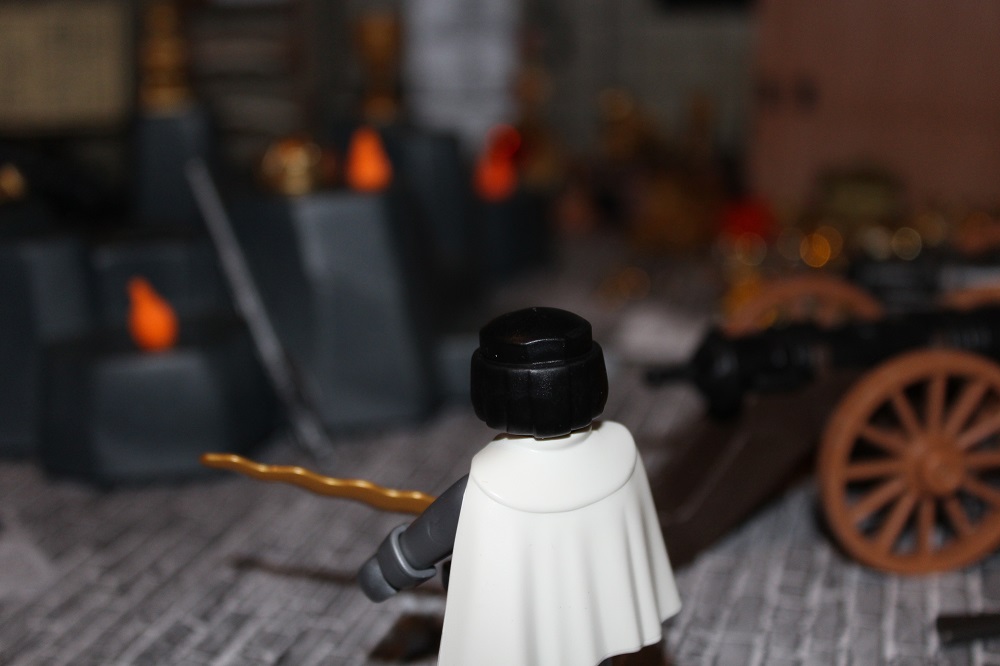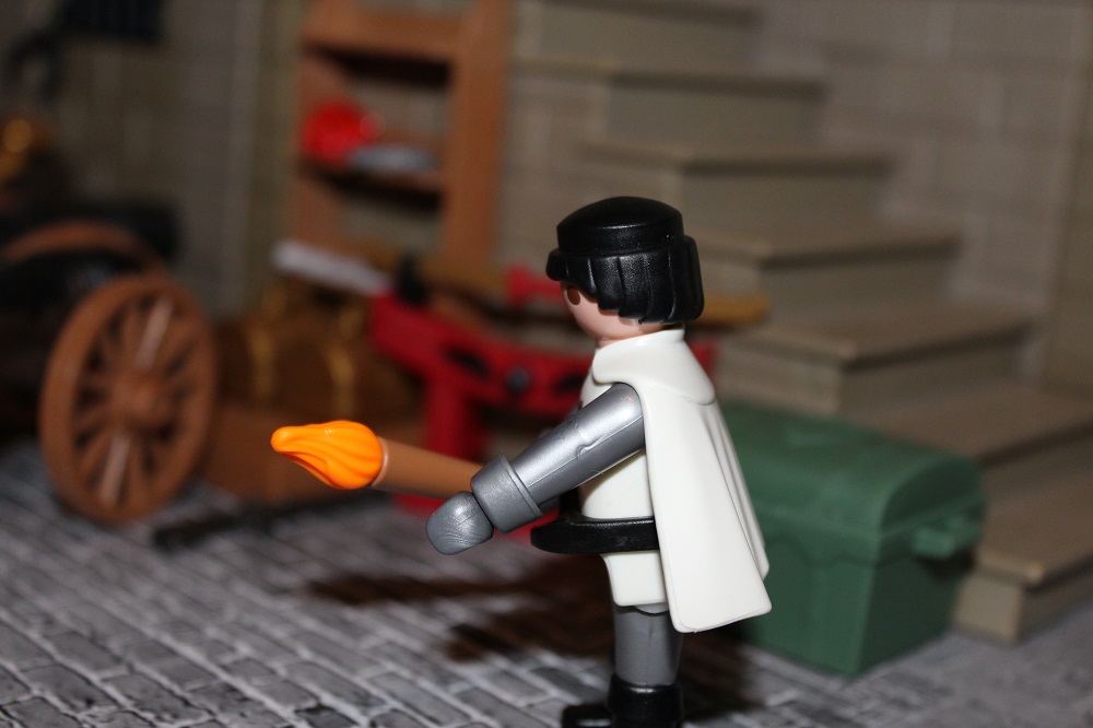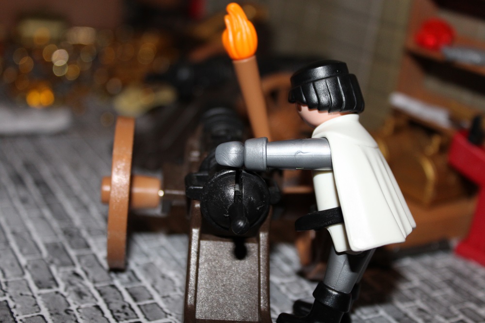Mit dem Feuer zündete Crain die Kanone und ein gewaltiger Knall, welcher den Keller erschütterte wurde ausgelöst.