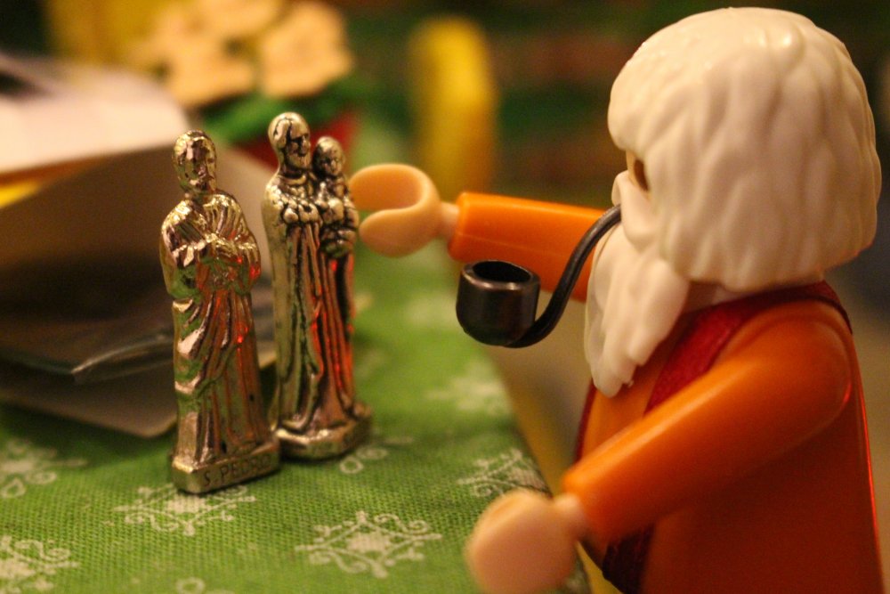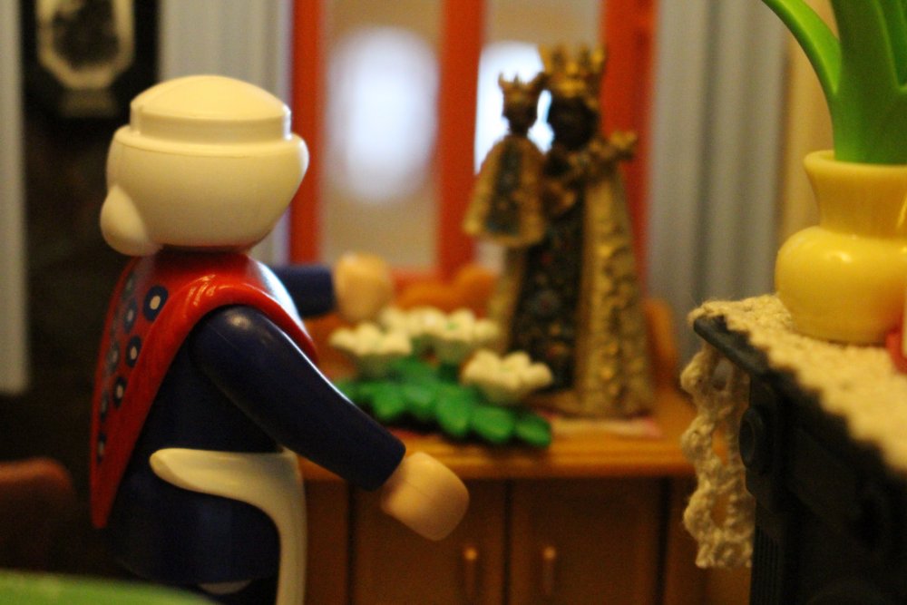 Jetzt wohnen St.Josef und St.Petrus auch mit beim Weihnachtsmann im Haus und Frau Weihnachtsmann ist ganz begeistert von der Madonna von Altötting