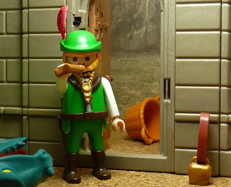 Unterdes ging der jüngste Jägerbursche ganz betrübt in den drei Kammern herum und dachte, dass er nun wohl sterben müsse, da sah er an der Wand `ne Flötenpfeife hängen, da sagte er: „Warum hängst du da wohl, hier kann ja doch keiner lustig sein.“