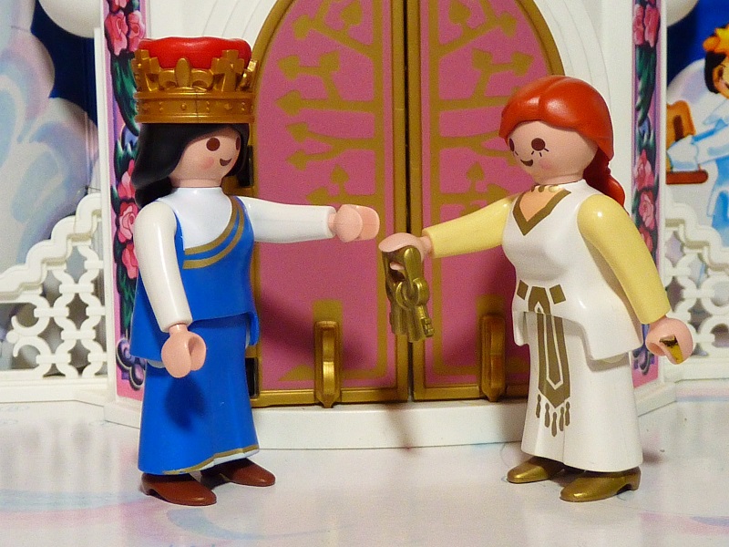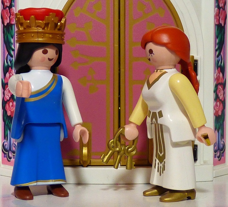 Als es nun vierzehn Jahr alt geworden war, rief es einmal die Jungfrau Maria zu sich und sprach: „Liebes Kind, ich habe eine große Reise vor, da nimm die Schlüssel zu den dreizehn Türen des Himmelreichs in Verwahrung: zwölf davon darfst du aufschließen und die Herrlichkeiten darin betrachten, aber die dreizehnte wozu dieser kleine Schlüssel gehört, die ist dir verboten: hüte dich, dass du sie nicht aufschließest, sonst wirst du unglücklich.“ Das Mädchen versprach, gehorsam zu sein.