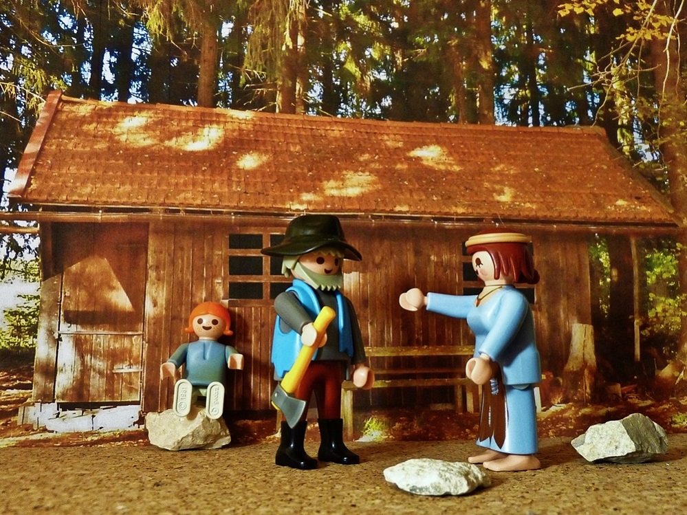 Vor einem großen Walde lebte ein Holzhacker mit seiner Frau, der hatte nur ein einziges Kind, das war ein Mädchen von drei Jahren. Sie waren so arm, dass sie nicht mehr das tägliche Brot hatten und nicht wussten, was sie ihm sollten zu essen geben.
