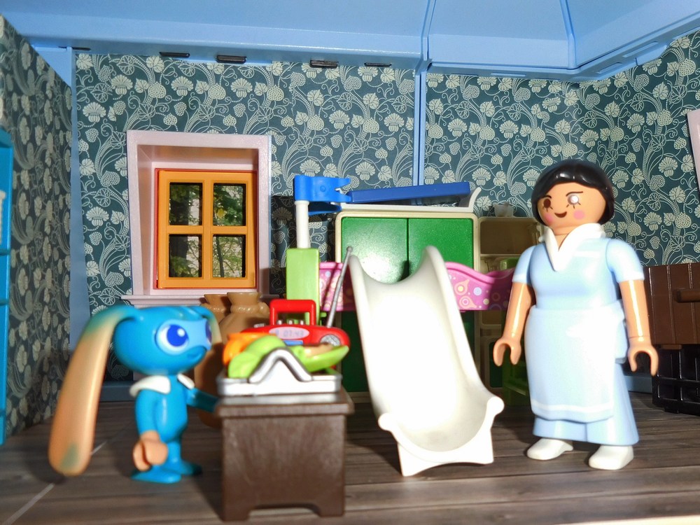 Ich stelle Kiki das Schaukelpferd hin, das sich ja eigentlich