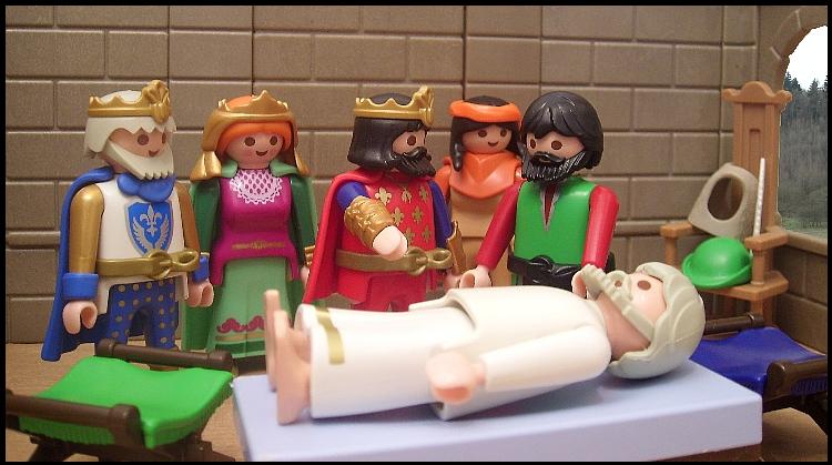 Zwei Tage blieben Lilian und Ras in Arns Kammer, und nur nachts übergaben sie die Wache an die Ordensleute. Am dritten Tag erschien Pardium wieder in der Kammer. Er brachte weitere Besucher. Ihm folgten Nihra, die Königin des Seenlandes, sowie die Könige Turid von Mittland, Ras älterer Bruder, und Juras vom Südreich, Ras Onkel. Auch sie blickten voller Sorge auf ihren alten Weggefährten.