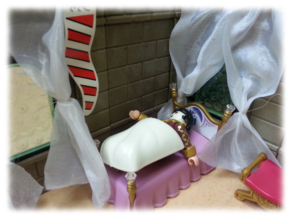 Kate saß also am Bette der Prinzen. Die Uhr schlug 10, der Prinz rührte sich nicht. Es wurde 11 Uhr, keine Regung. Die Uhr schlug Mitternacht, dong, dong, dong.... beim letzten Schlag der Glocke richtete sich der Prinz auf einmal auf....