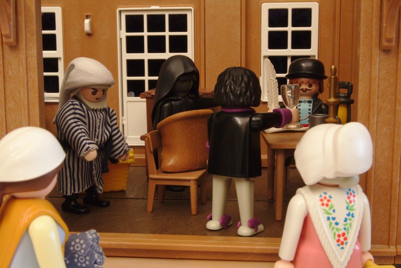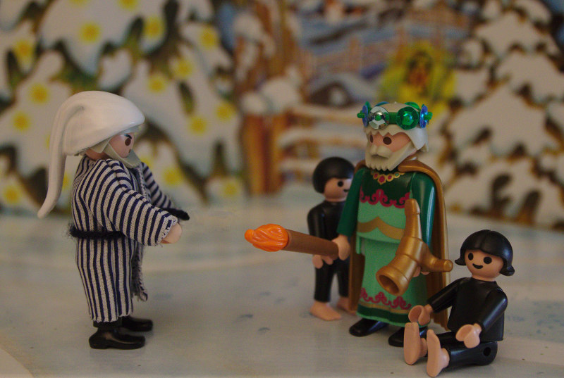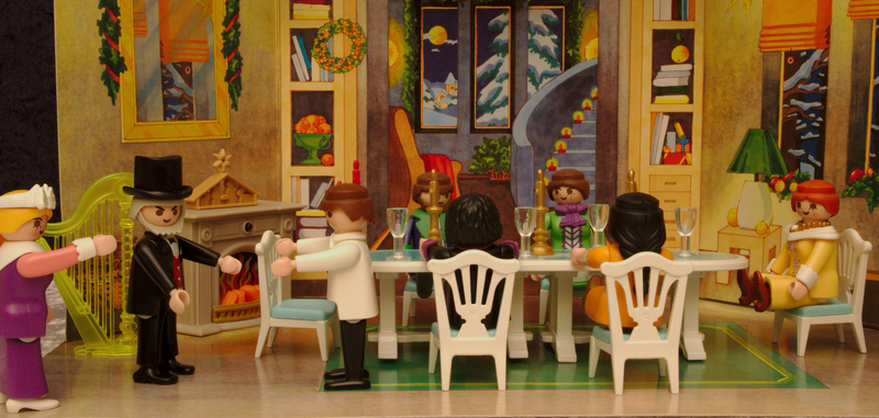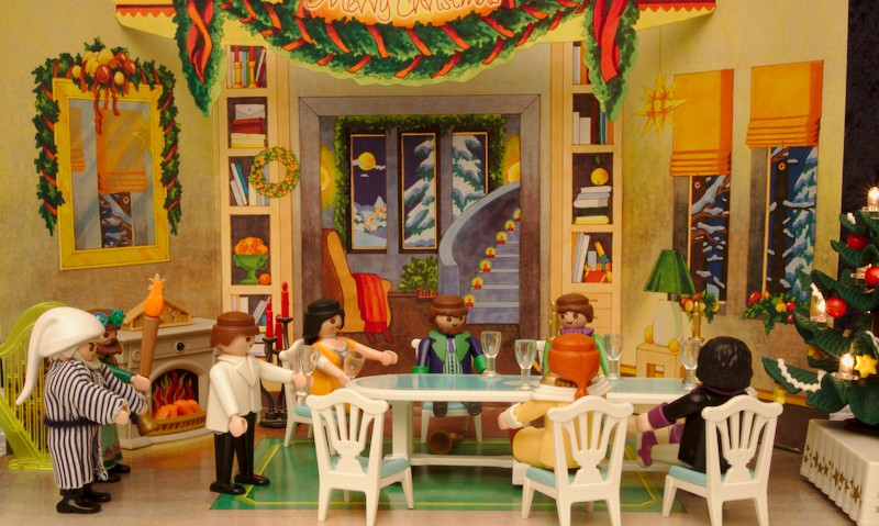 - Die Gäste sind fröhlich um den großen Tisch versammelt. Lachend berichtet der Hausherr: „Er sagte, Weihnachten sei ein Humbug, so wahr ich lebe! - Er ist schon ein komischer Kauz, und nicht einmal einer von der angenehmen Sorte. Aber er schadet sich damit am meisten. Er tut mir leid. Und deshalb werden ich ihn auch weiterhin jedes Jahr zum Essen einladen – ob es ihm passt oder nicht.“
