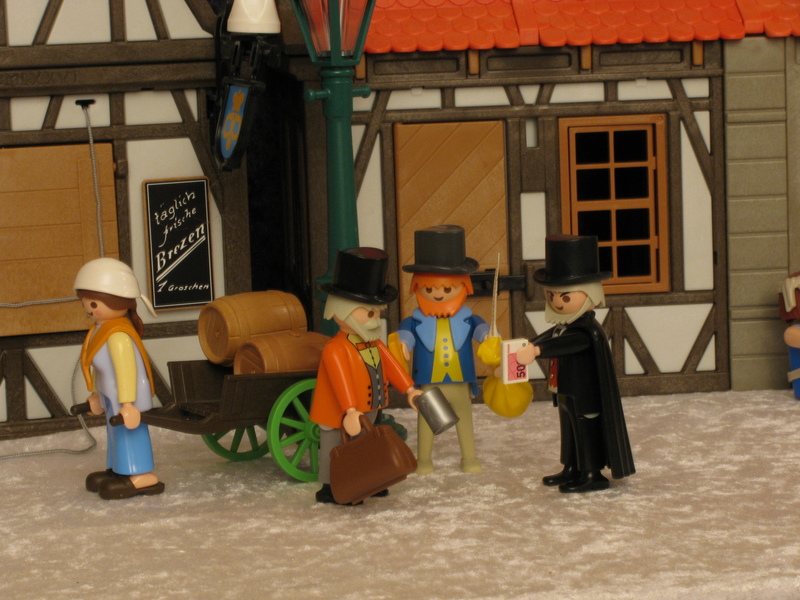 - Schon befinden sich die beiden in der City, direkt unter einer Gruppe Kaufleuten. „Nein“, sagt ein dicker Mann, „mehr weiss ich auch nicht darüber. Nur, dass er tot ist.“ „Das wird bestimmt ein billiges Begräbnis. Ich wüsste niemanden, der hingeht. Vielleicht sollten wir uns zusammentun und freiwillig hingehen?“ „Ich hätte nichts dagegen - wenn es ein ordentliches Mittagessen gibt!“ Darauf folgt allgemeines Gelächter.