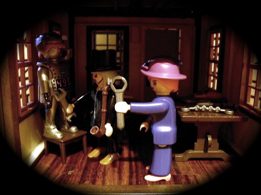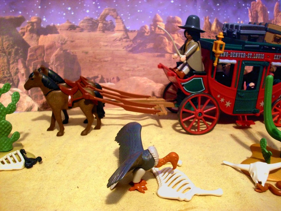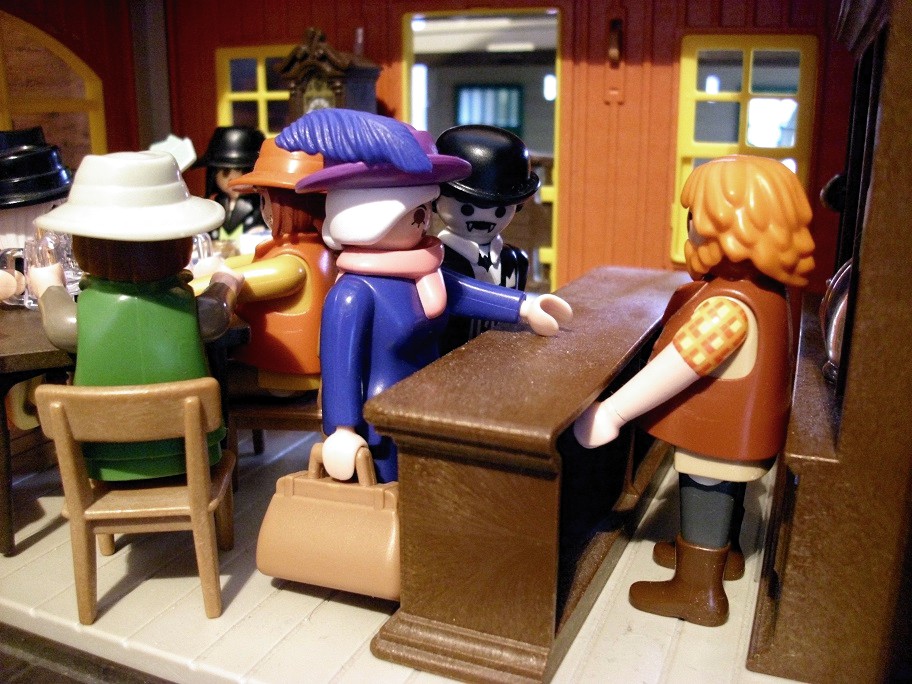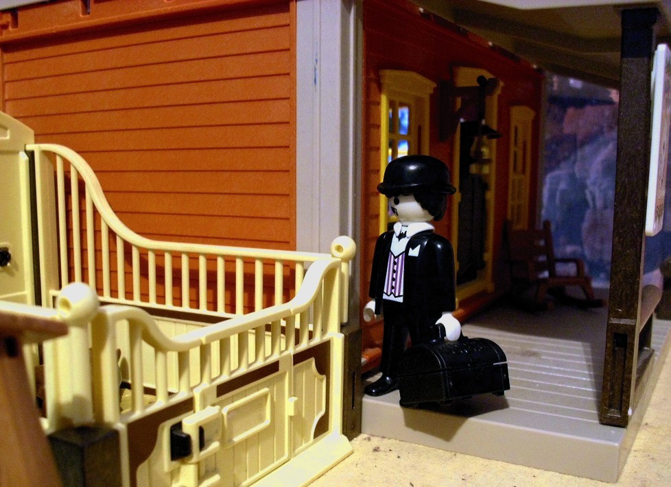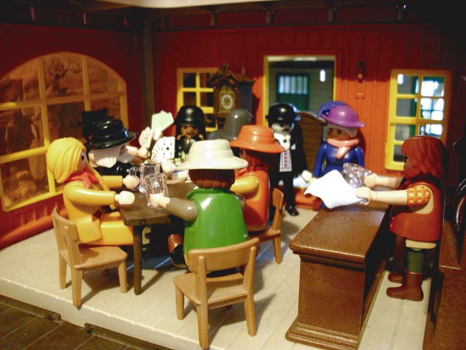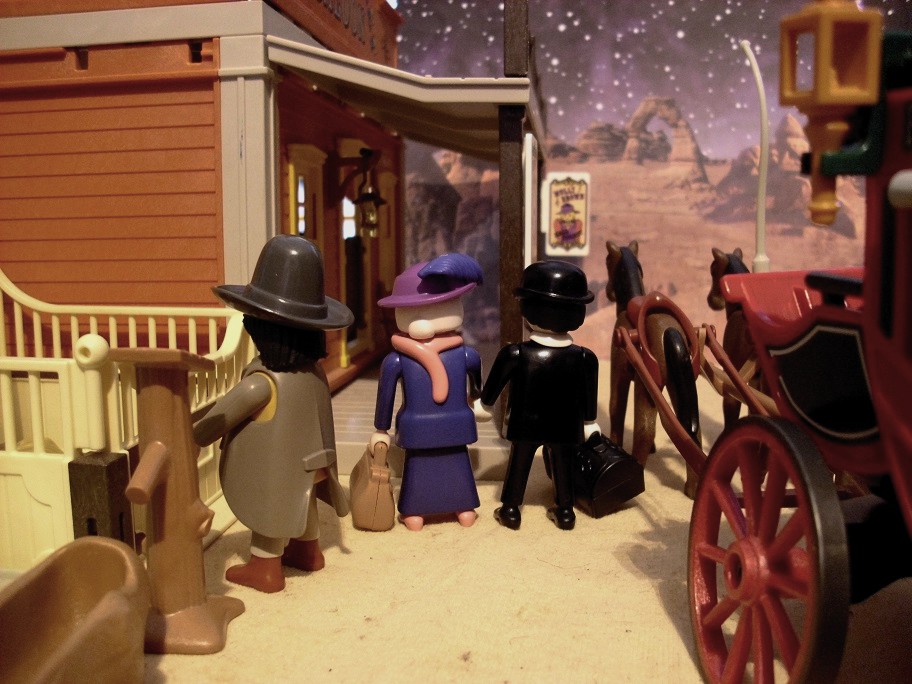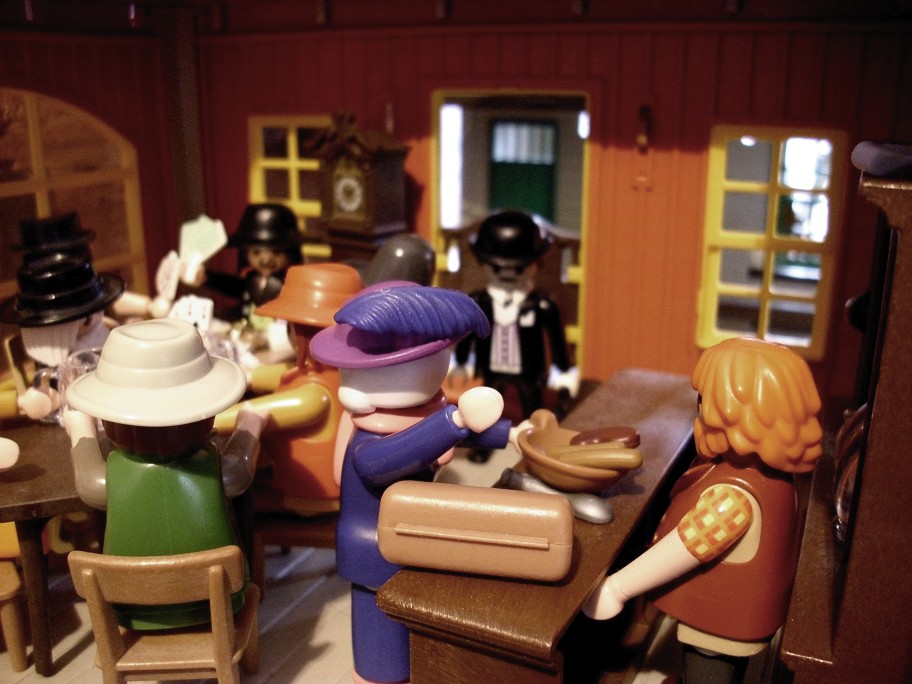 Da die Zeit an Silvester schon recht lang werden kann bis Mitternacht und auch „Dinner for one“ und Bleigießen nicht abendfüllend sind, hat sich meine Familie mal wieder einige Tage vorher hingesetzt und jeder hat eine Geschichte geschrieben, die wir uns am Silvesterabend einander vorgelesen haben. Meine Geschichte war inspiriert durch unsere kleine Westernstadt, die immer noch am Tisch steht und einigen Figuren die ich zu Weihnachten bekommen habe… Und da die Klickys meine Inspiration waren, war es auch nur naheliegend, selbige auch zu bebildern…