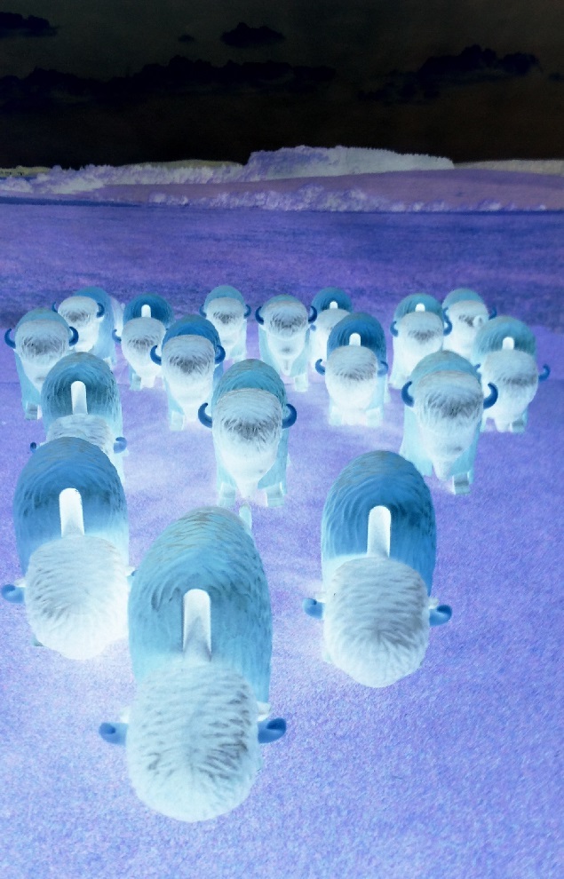 und dann nachts träumte, dass es ein wilde Bisonherde war, die da aus dem Tal heraufgestürmt kam
