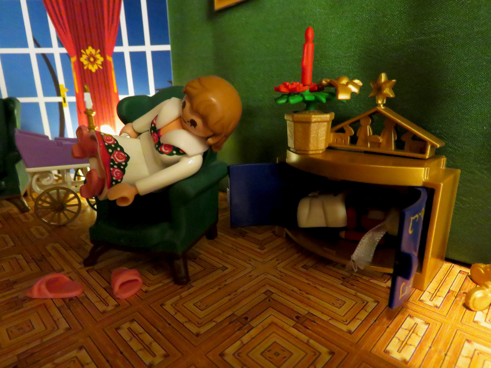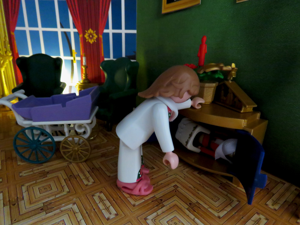 Während die Dienstmädchen noch schnell für Ordnung sorgten versuchte Marie ihre Frau Mama davon zu überzeugen, dass sie noch ein wenig im Weihnachtszimmer bleiben dürfe. Sie wolle nur noch den Nussknacker sorgfältig schlafen legen.
