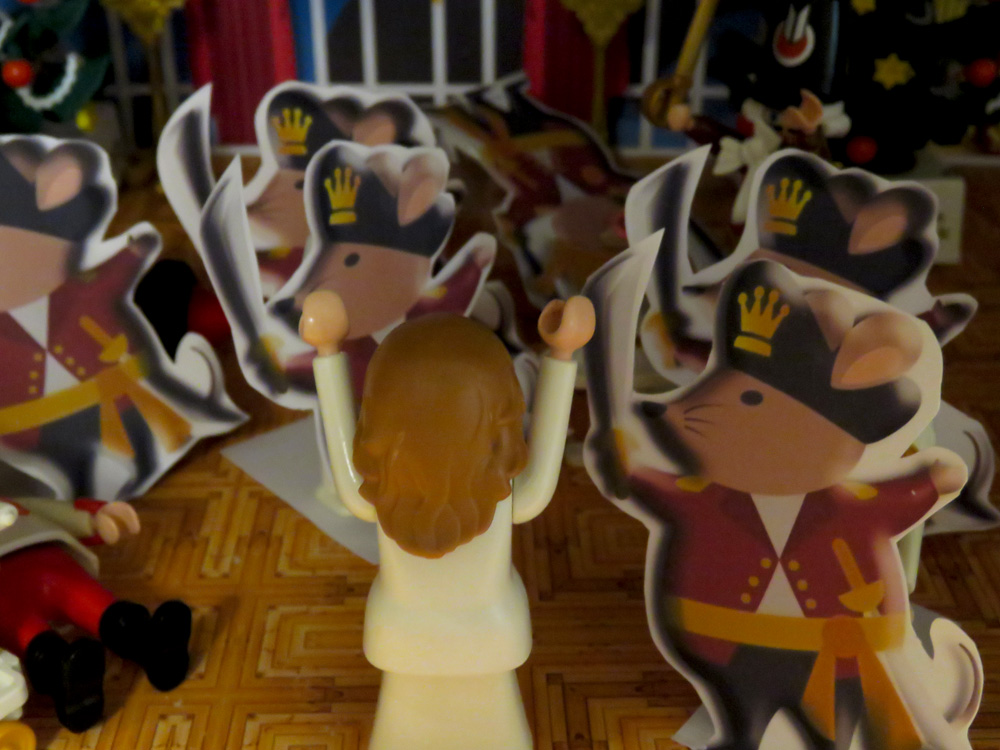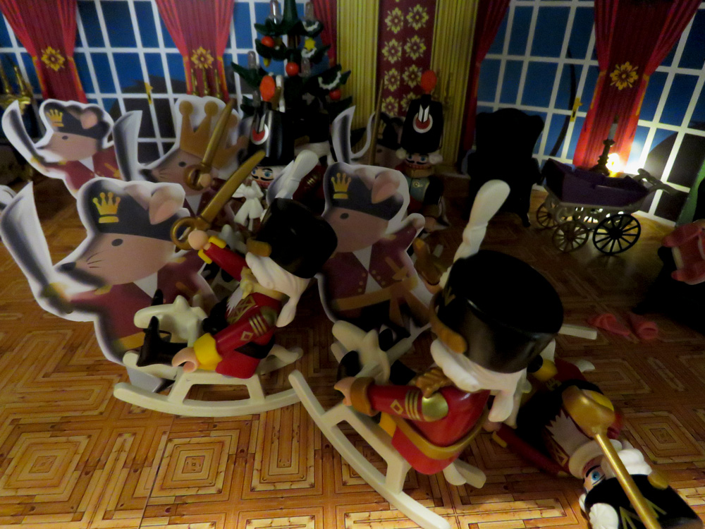 und vor Maries entsetztem Auge zog plötzlich der Nussknacker zusammen mit weiteren Nussknackern (aber sie erkannten den "ihren" an ihrer Schleife mit dem sie ihn verbunden hatte) gegen eine Horde Mäuse in den Krieg!