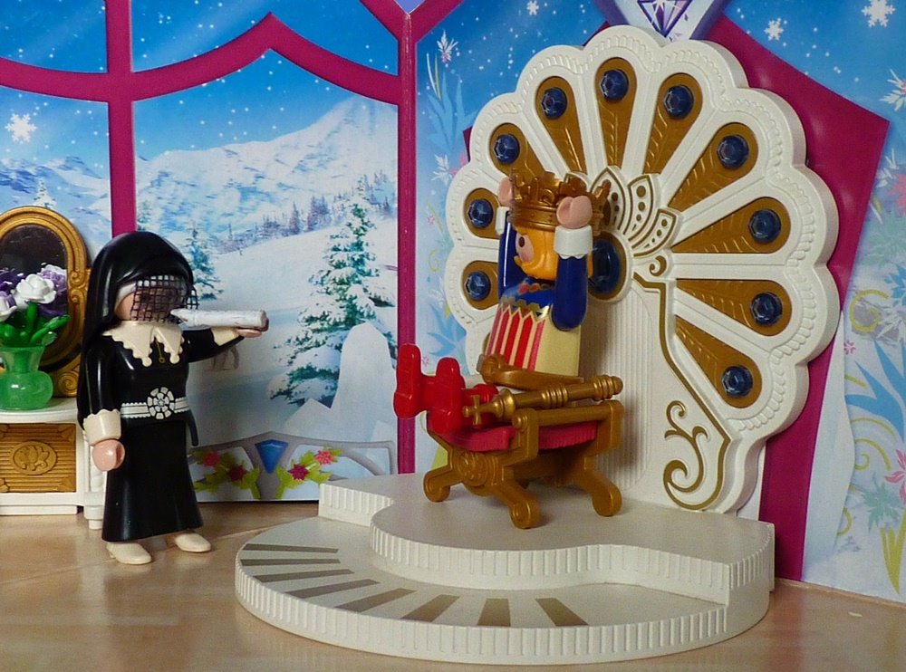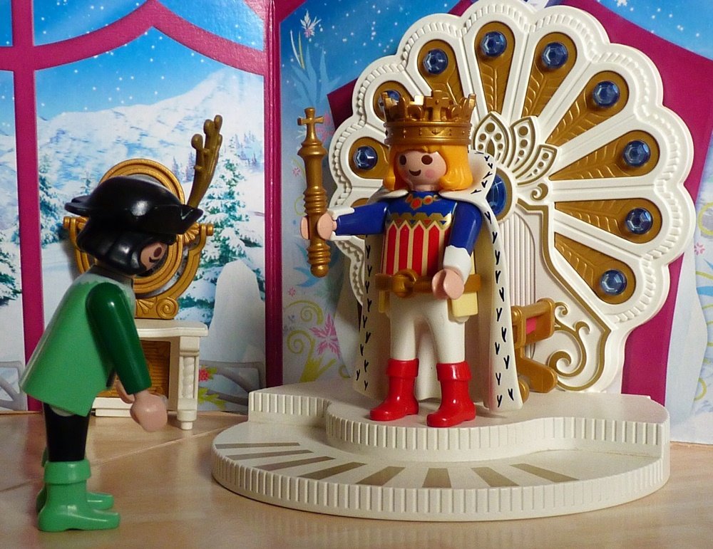 „Ha!“, schreit der König, und das Szepter entsinkt seiner Hand, und er fasst mit beiden Händen nach seiner Krone