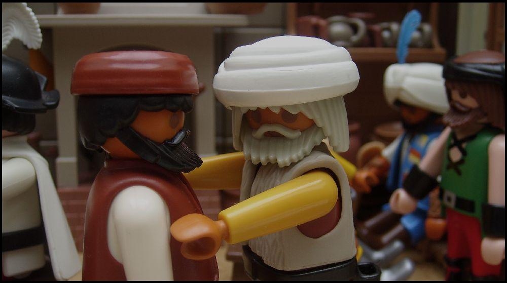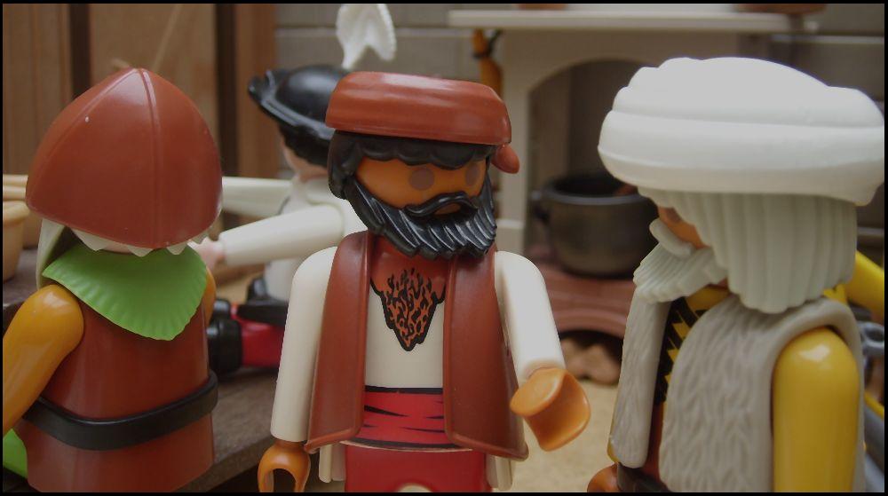 Als Serabas dies hörte, sagte, „es tut mir leid Harim, aber Meister Hadrax wird sicherlich Verständnis dafür haben, dass ich hier bei meiner Frau und meinem Sohn bleibe.“ Schlagartig war Harim wieder hellwach. All die Stunden hatte er sich ablenken lassen, er hatte nicht mehr an die Gefahren gedacht, von denen Hadrax ihm berichtet hatte. Auch Karabas und Fafnach meinten, dass sie lieber im Dorfe bleiben wollten. „Meister Hadrax konnte dir nicht sagen, wie lange du unterwegs sein wirst, aber wir müssen schon bald wieder nach Süden aufbrechen. Allzulange können unsere Geschäfte nicht ohne uns auskommen.“