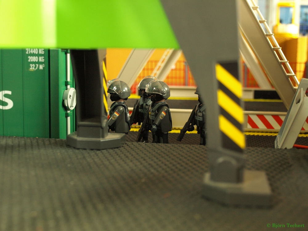 Während Björn sich von Rudi die Steuerung erklären lässt werden die GSG9 Beamten mit ihren Gewehren ausgerüstet.
