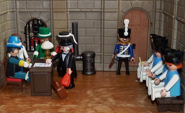Es war elf Uhr; alles schlief. Die verschiedenen Beamte... erschienen staffelförmig, nach dem Grade ihres Ranges, der vornehmste zuletzt. Die üblichen Fragen und Schreibereien erfolgten rasch; ich bat um ein Kaminzimmer, wurde geschäftsmäßig nach der Ausreichendheit meiner Kassenbestände gefragt und erhielt das Gewünschte ohne weiteres, nachdem ich die ausreichenden Garantien gegeben hatte...